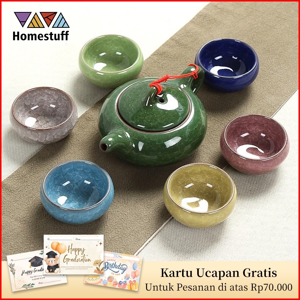 Homestuff Cangkir Teko Set Keramik Chinese Tea Pot Set Ceramic 6 Cup Souvenir Gift Classic