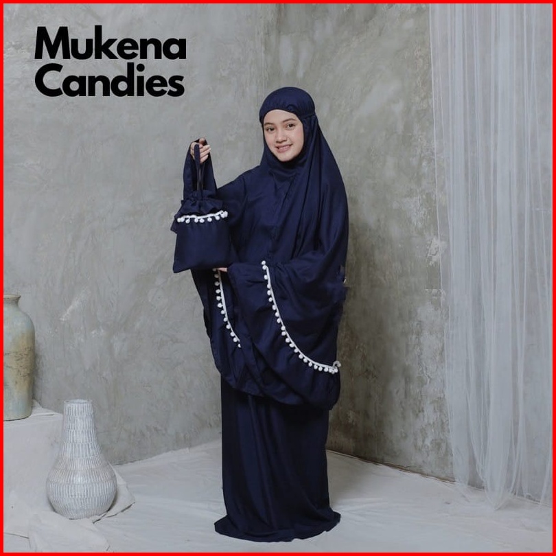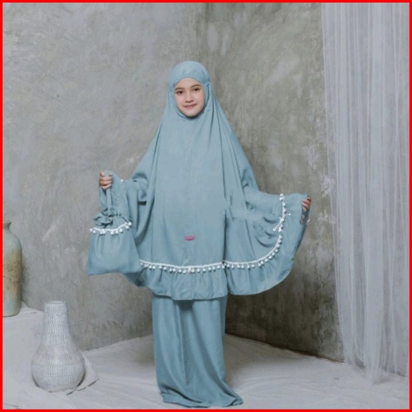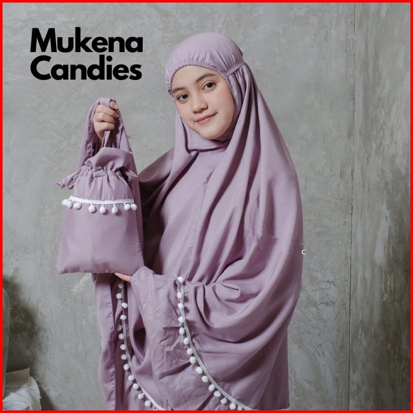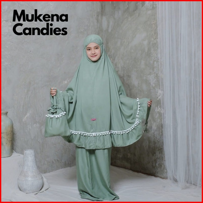 Deve- Mukena Anak Candies Katun Mikro Renda Pompom Anak Tanggung Dan Standar Mukena Anak Prempuan