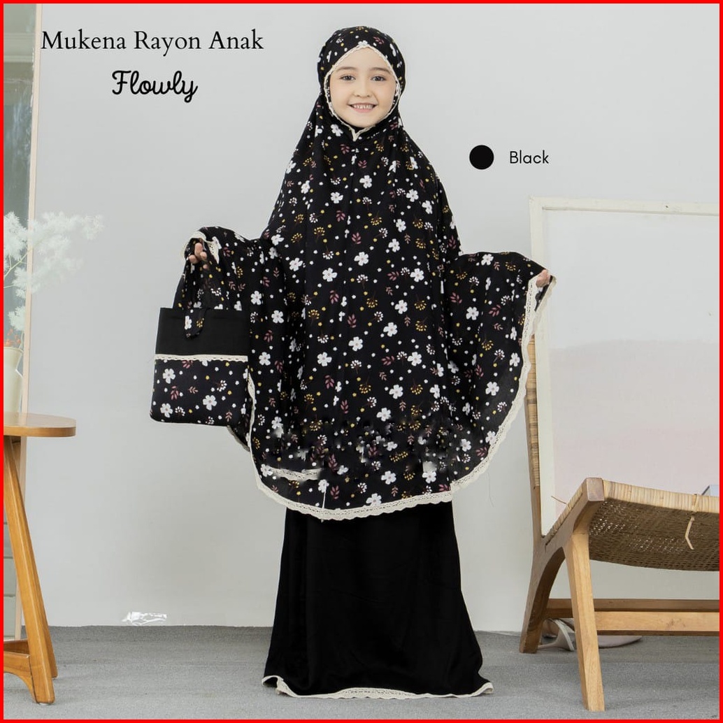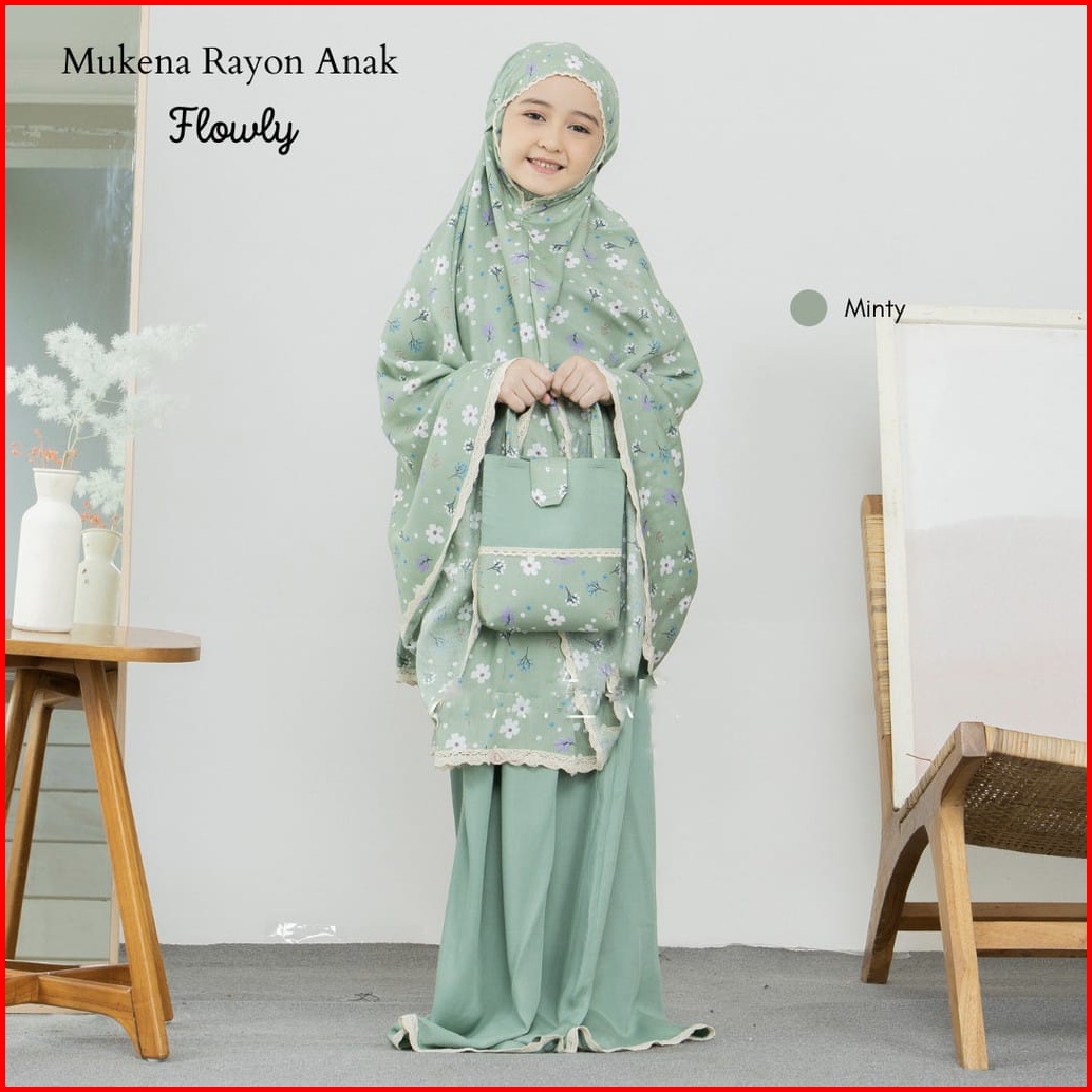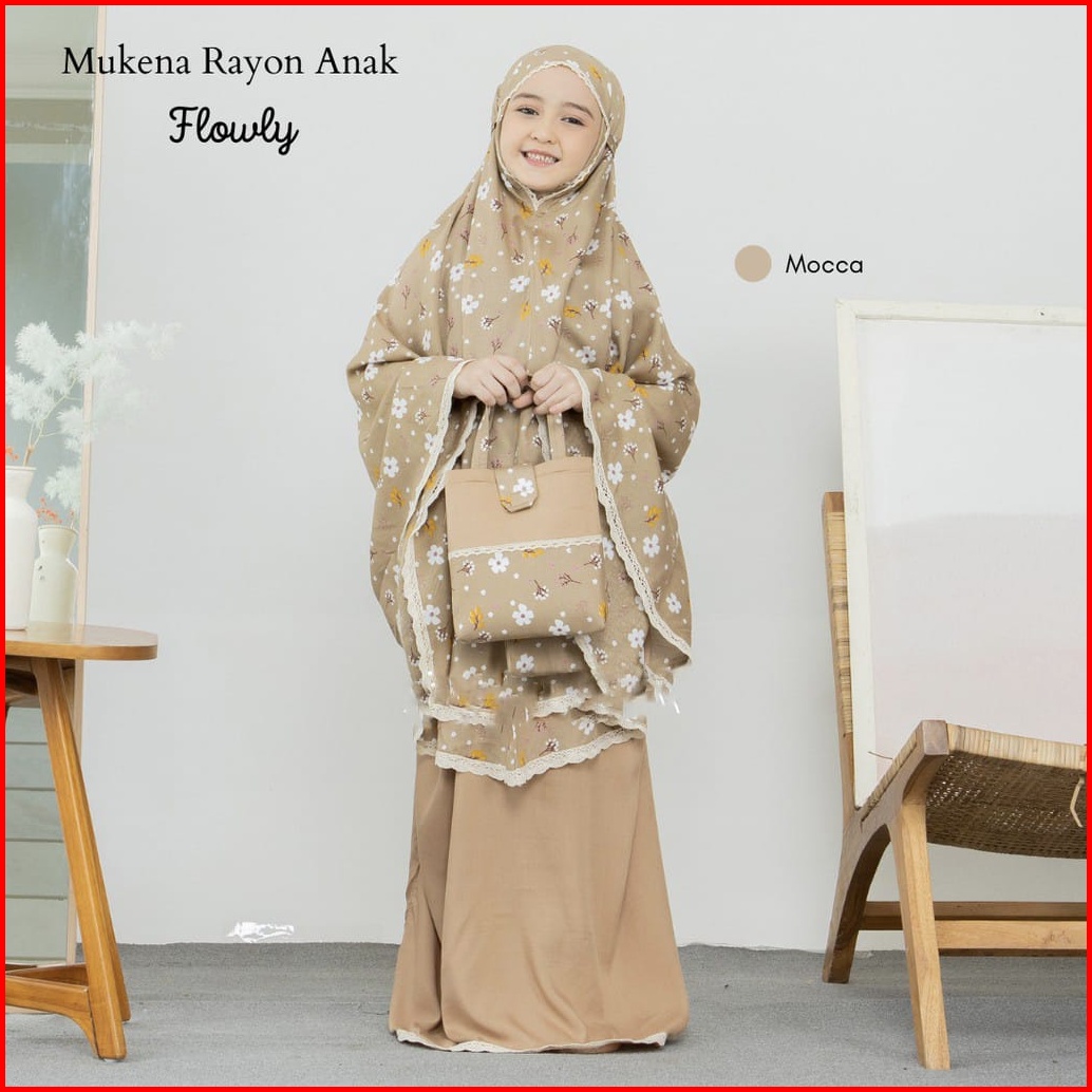 Mukena Anak Tanggung Flowly Series Rayon Bali Kombinasi Renda Tas Sleting