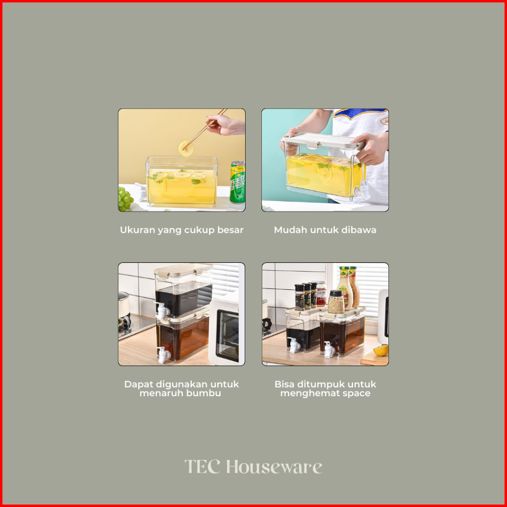 Wadah Tempat Penyimpanan Tec Wata Tempat Air Minum Dispenser Air Tempat Minuman Kulkas Dispenser Air Dingin Tempat Infus