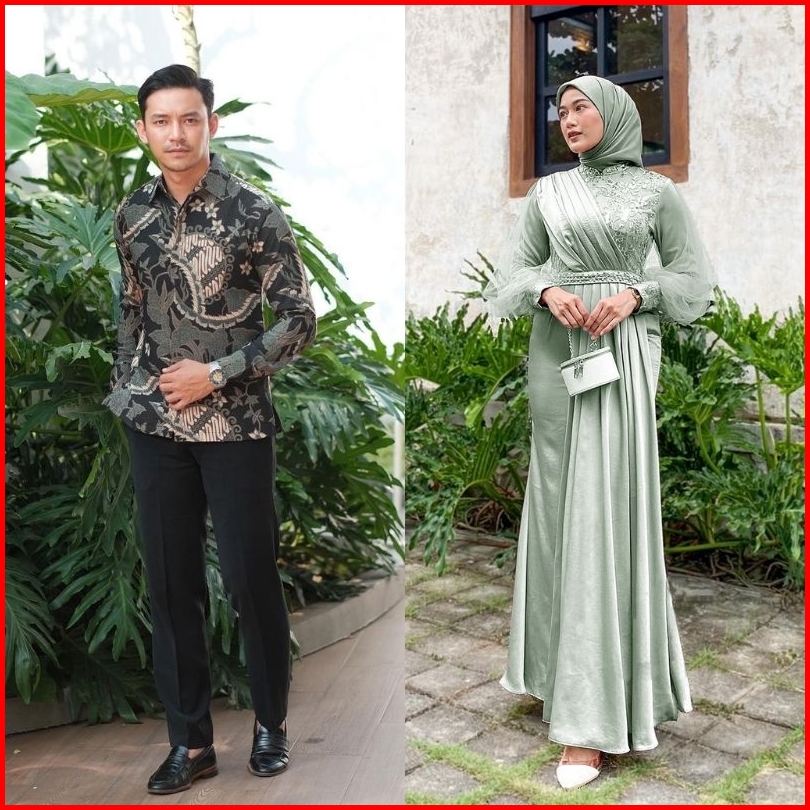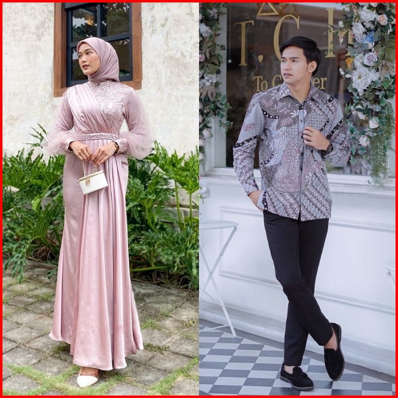 Couple Gamis Azalia Brukat Tulle Mutiara Dress Kondangan Lamaran Baju Lebaran Adeeva Maxi Dress Modern Terbaru 2025 Leba