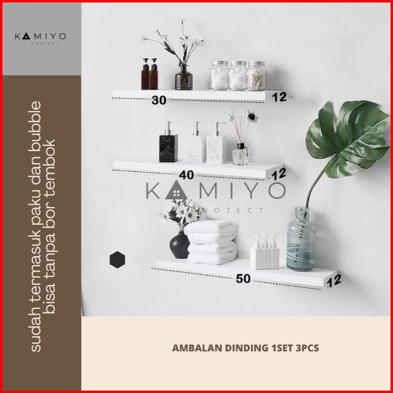Kamiyo Ambalan Dinding Murah 1 Set 3pcs Floating Shelves