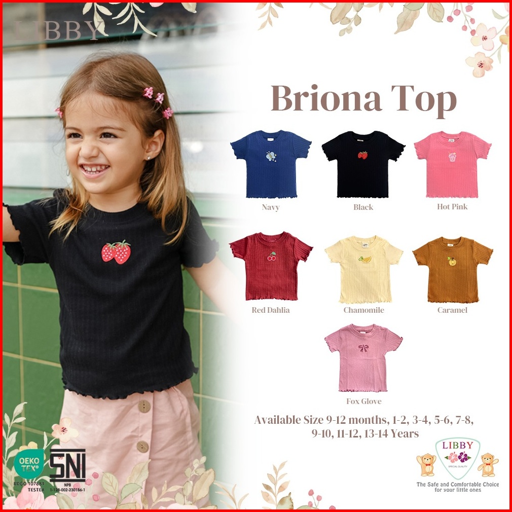Libby Atasan Anak Perempuan Ruffle Kaos Polos Briona Top Usia 9 Bulan - 14 Tahun 1pcs