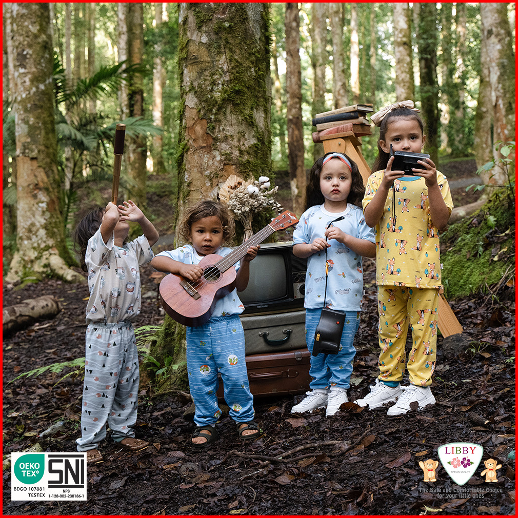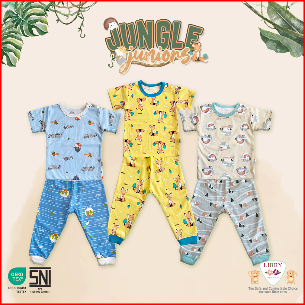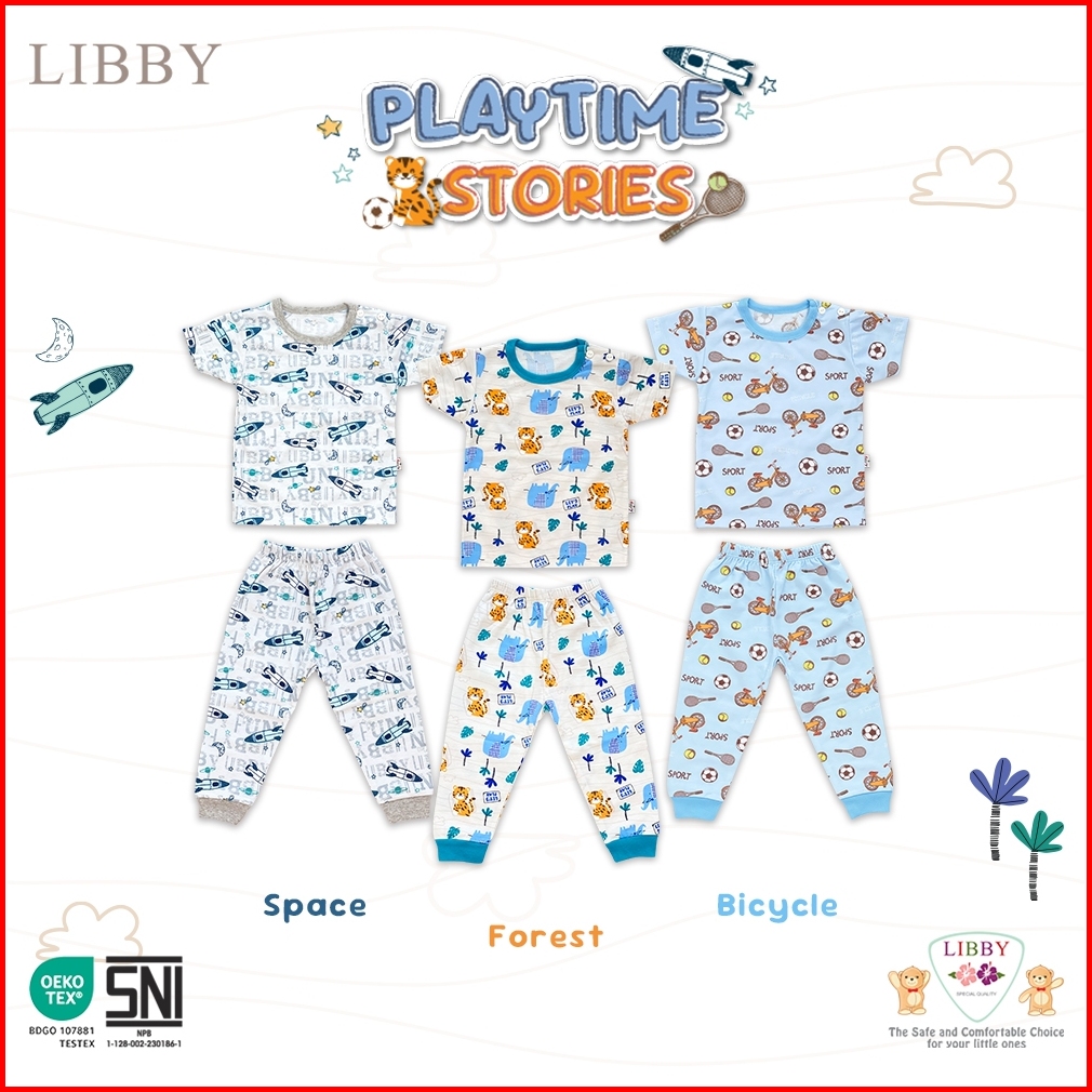 Libby Setelan Oblong Pendek - Celana Panjang Motif Unisex 1 Stel Jungle Juniors Camp Venture Playtime Stories Glowy Pals