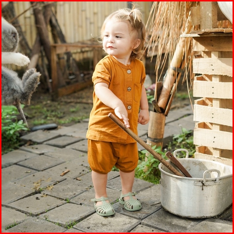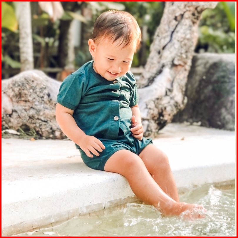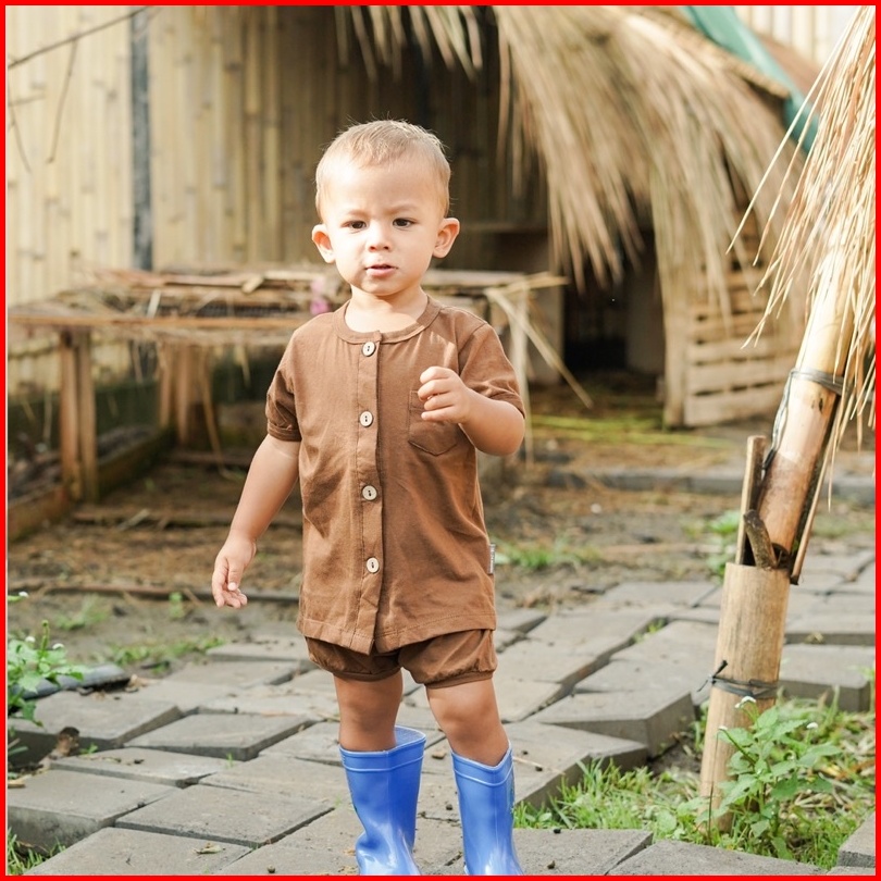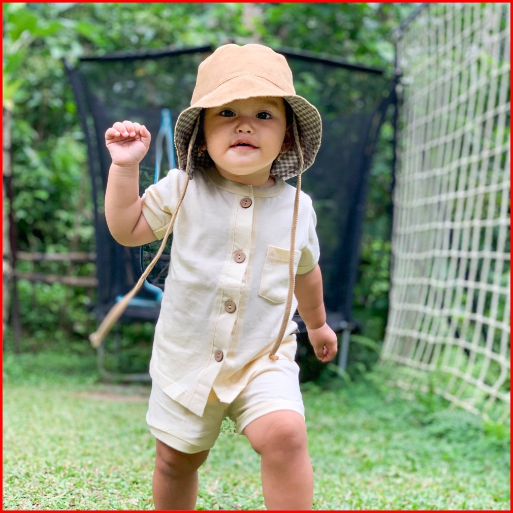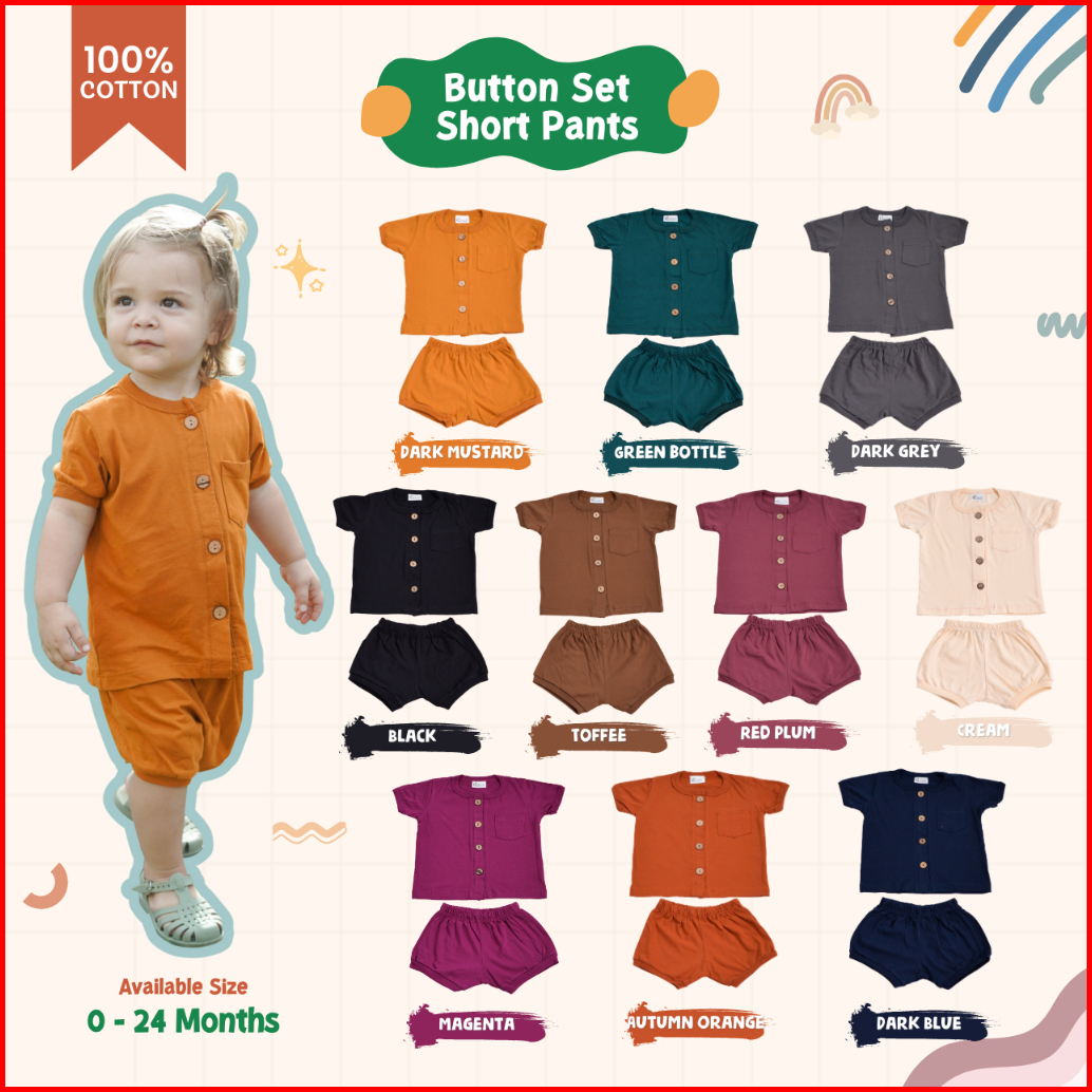 Little Me - Setelan Bayi Baby Button Set Short Pants Baby Set Celana Pendek Piyama Bayi Lengan Pendek Pakaian Bayi Setel
