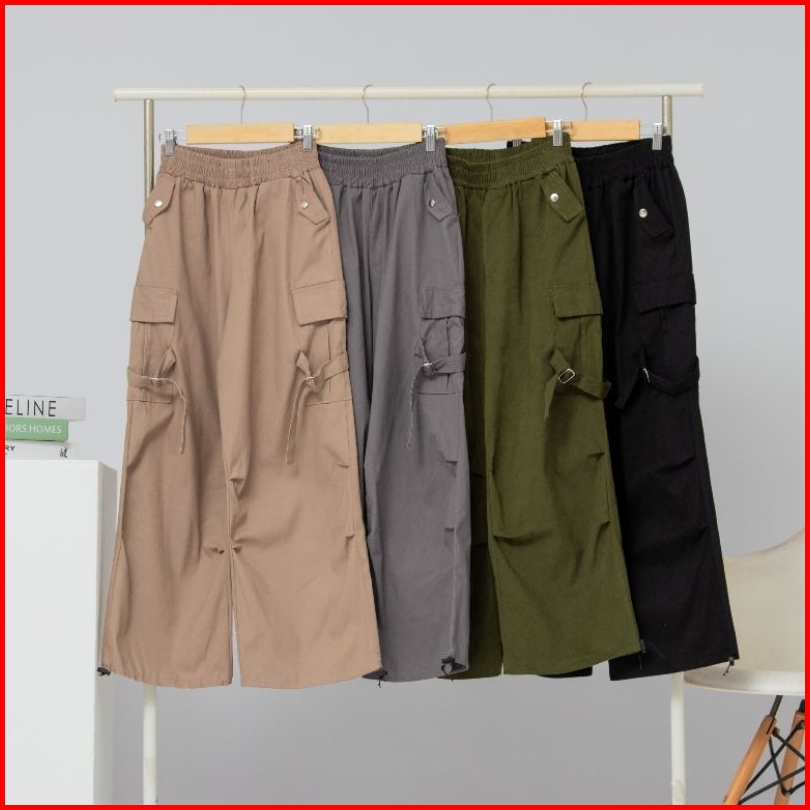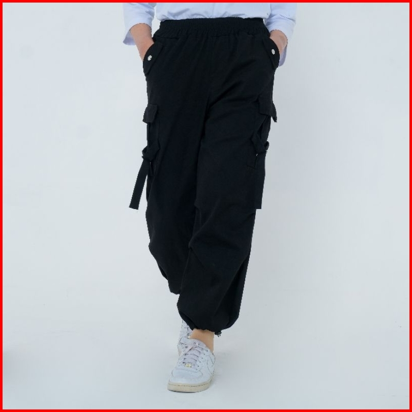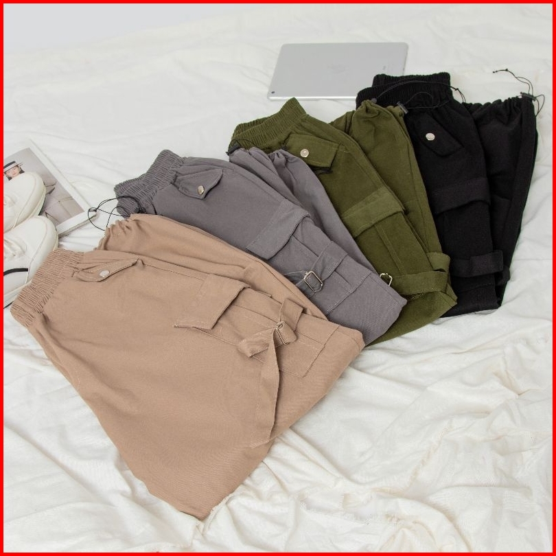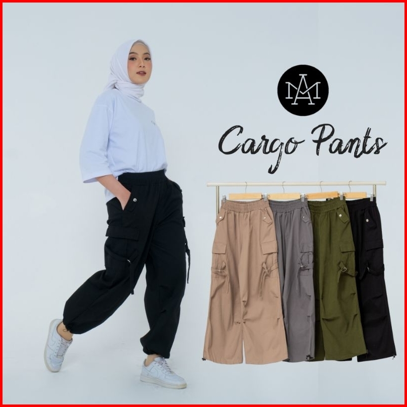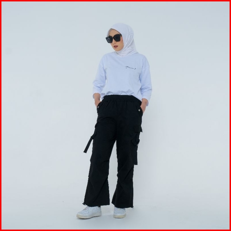 Celana Cargo Pants Wanita Jumbo Highwaist Muslim Terbaru Kekinian