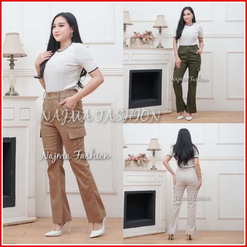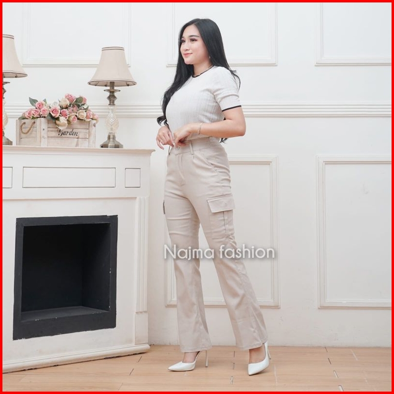 Celana Cutbray Cargo Pants Celana Kargo Twill Strecth Cutbray Wide Leg Pants