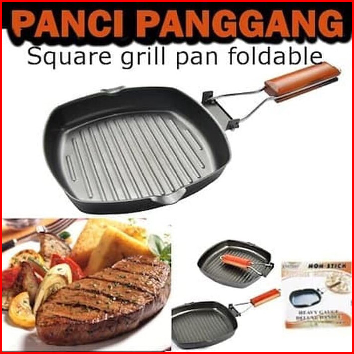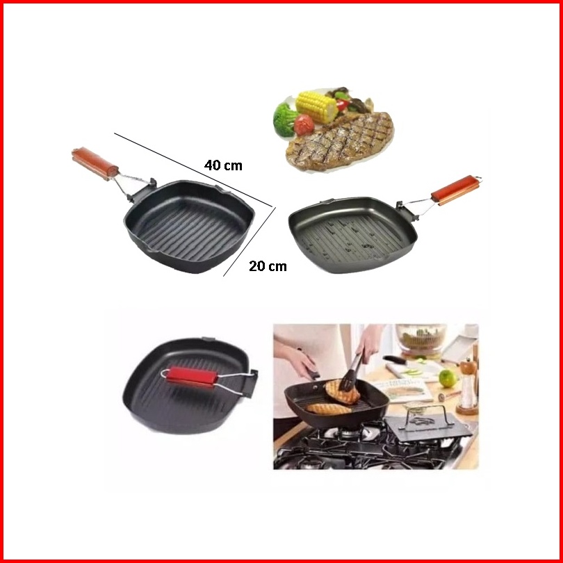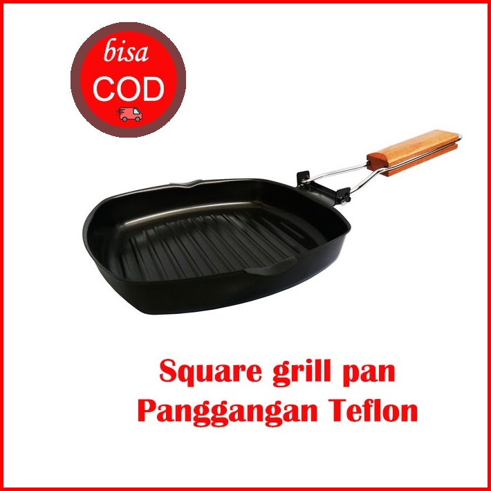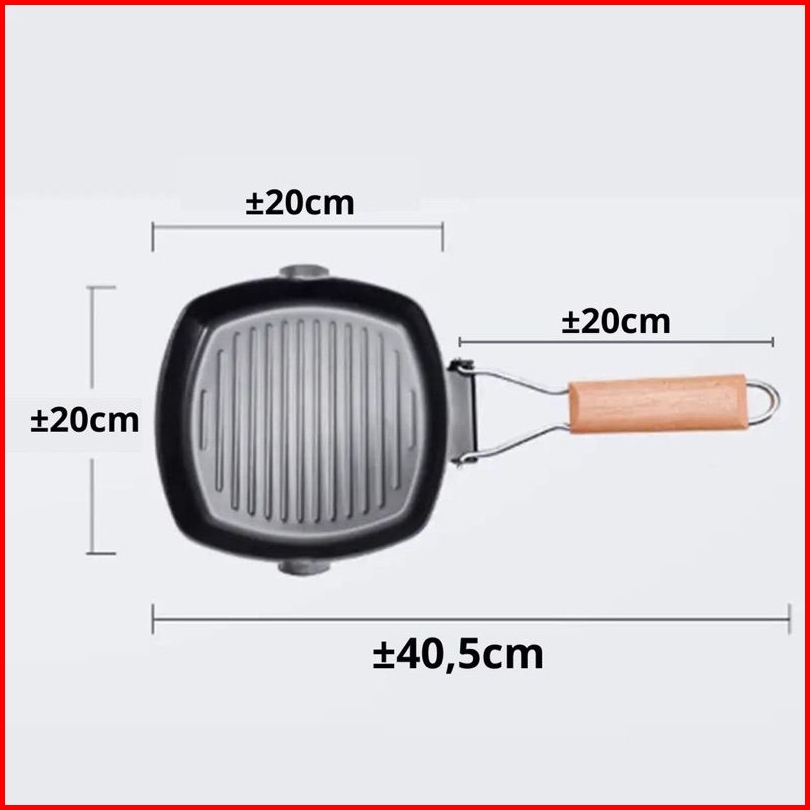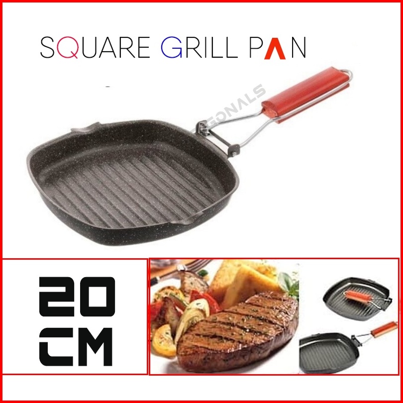 Square Grill Pan Pemanggang Kotak Teflon 20 Cm Panggangan Bakar Sosis Ikan Ayam Daging Dll