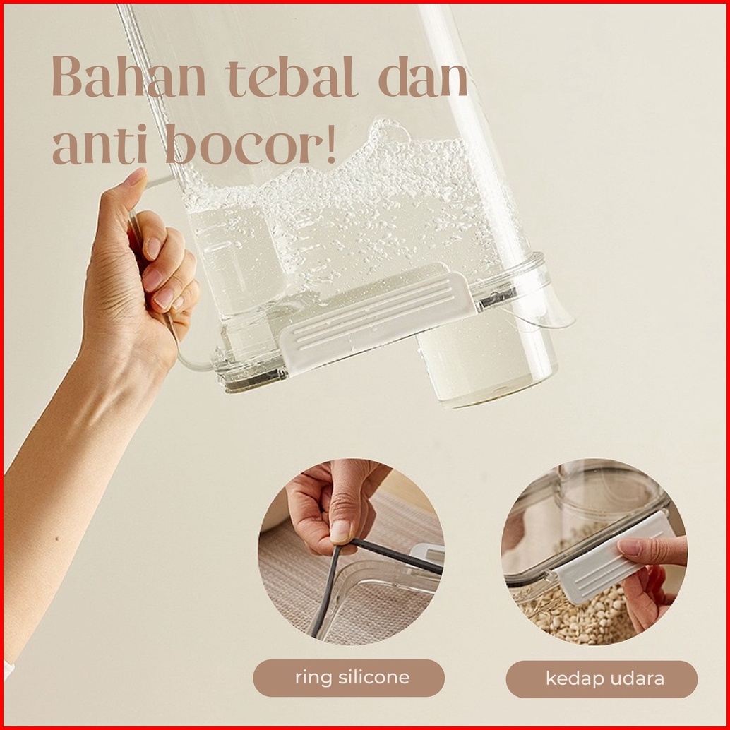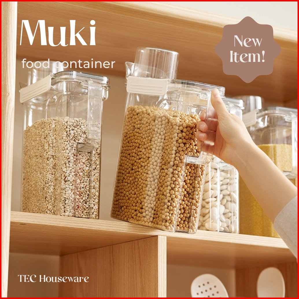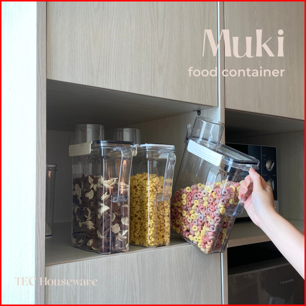 Toples Tempat Penyimpanan Tec Muki Toples Cereal Bahan Pet Kedap Udara Tempat Penyimpanan Makanan Serbaguna Dry Food Sto