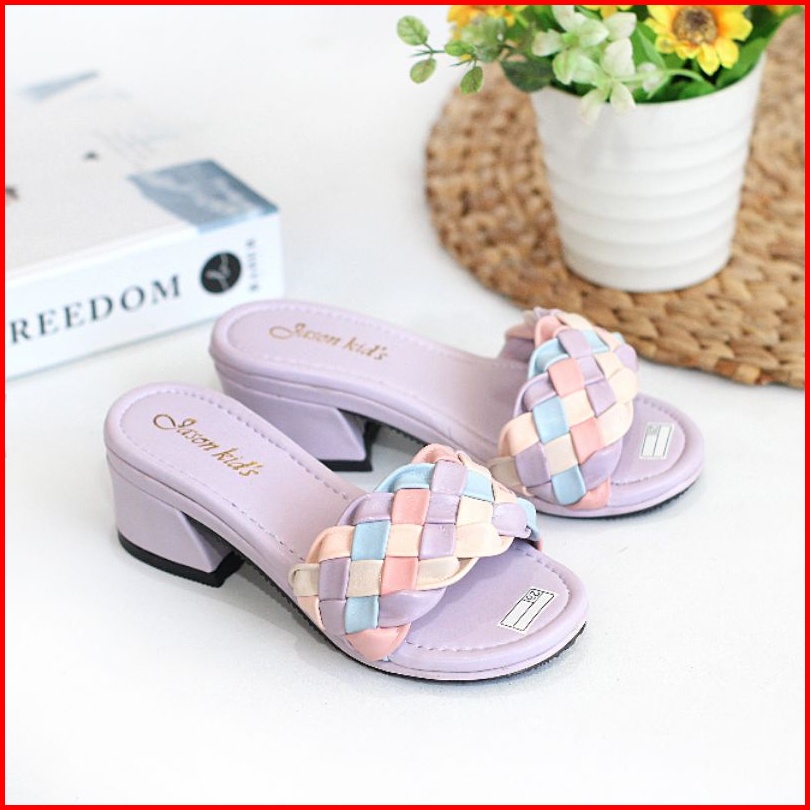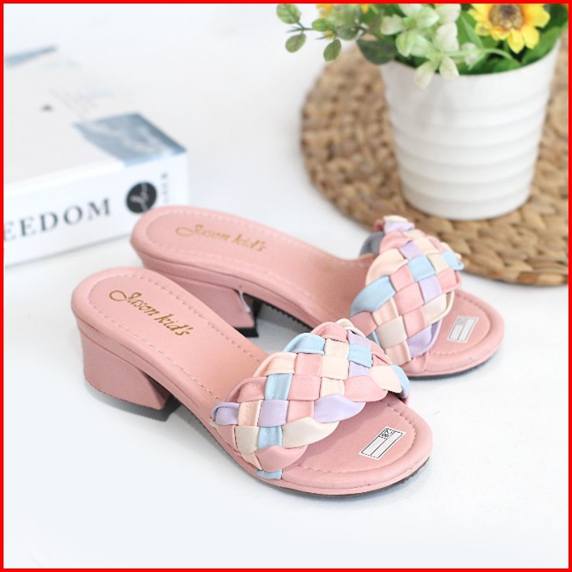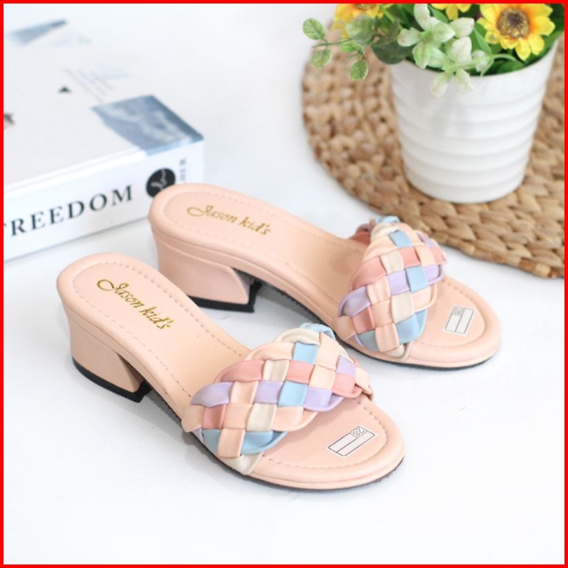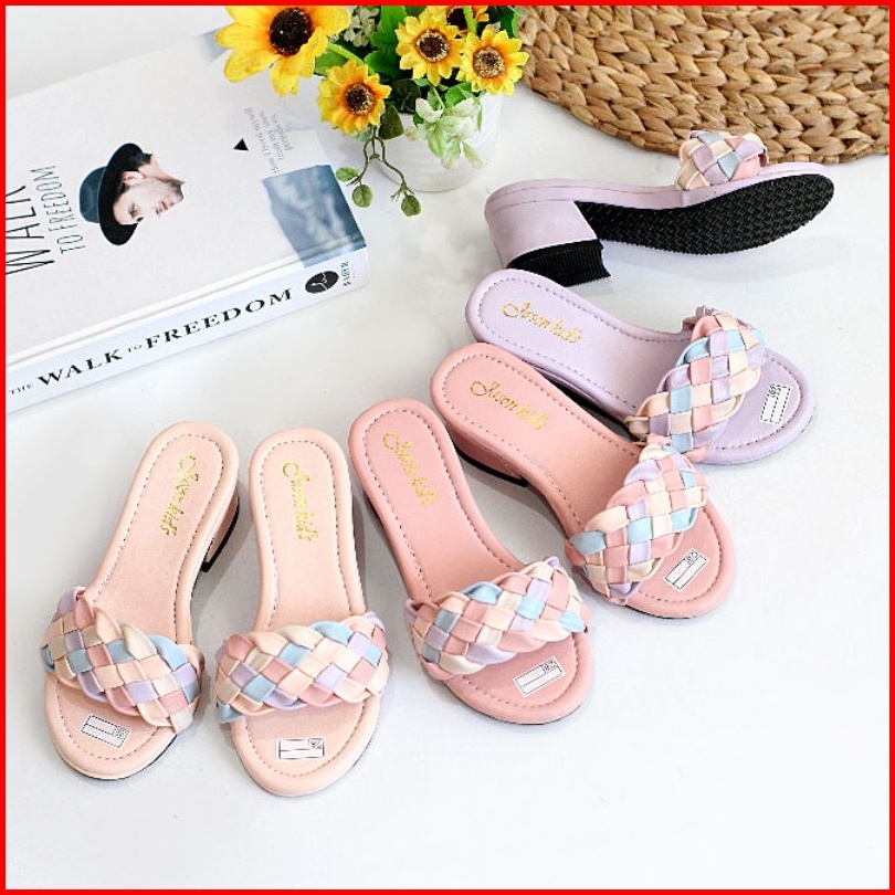 Sandal Pesta Anak Perempuan Hak Tahu Motif Kepang Selop Kk-02