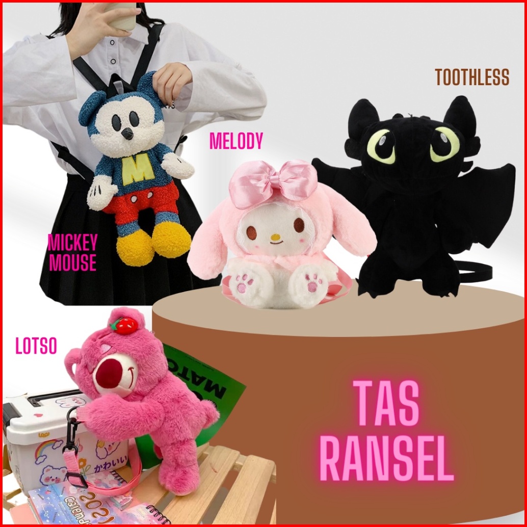 Littlekiddoss Tas Anak Kartun Lucu Boneka Ransel Unisex Import Bahan Lembut Tas Anak Tk Sd Smp Sma Dewasa Tas Ransel Bon