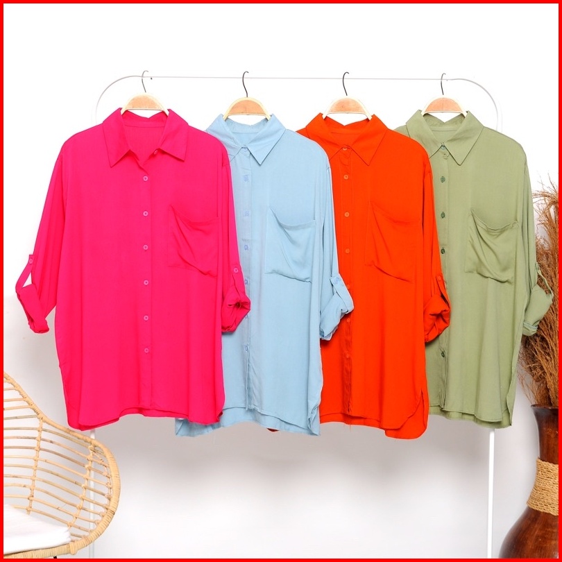 Kemeja Basic Tangan Skoder Atasan Top Wanita Kemeja Elegan Wanita