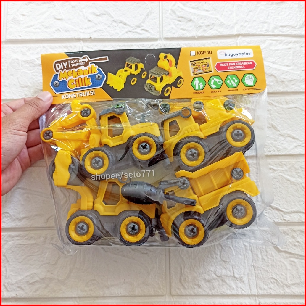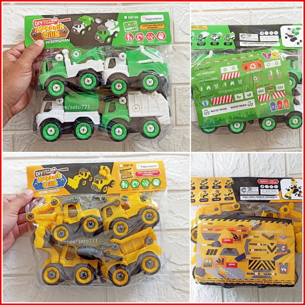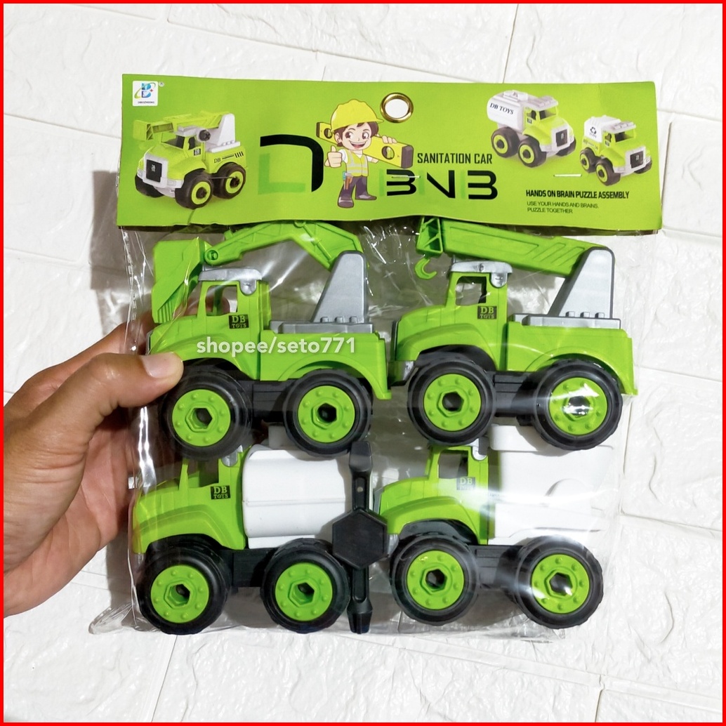 Diy Konstruksi 4pcs Do It Yourself Mainan Bongkar Pasang Mobil Puzzle Construction Puzle Crane Truk Kgp