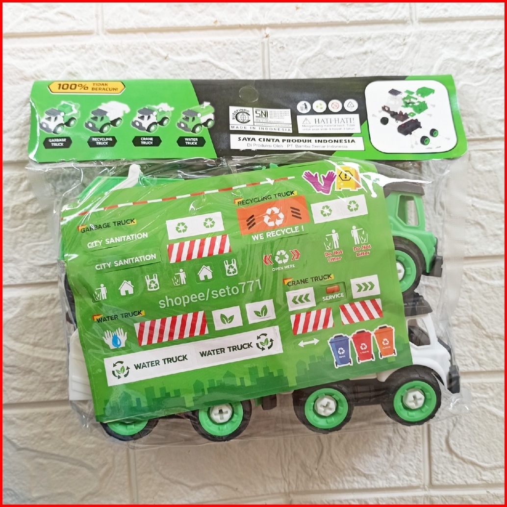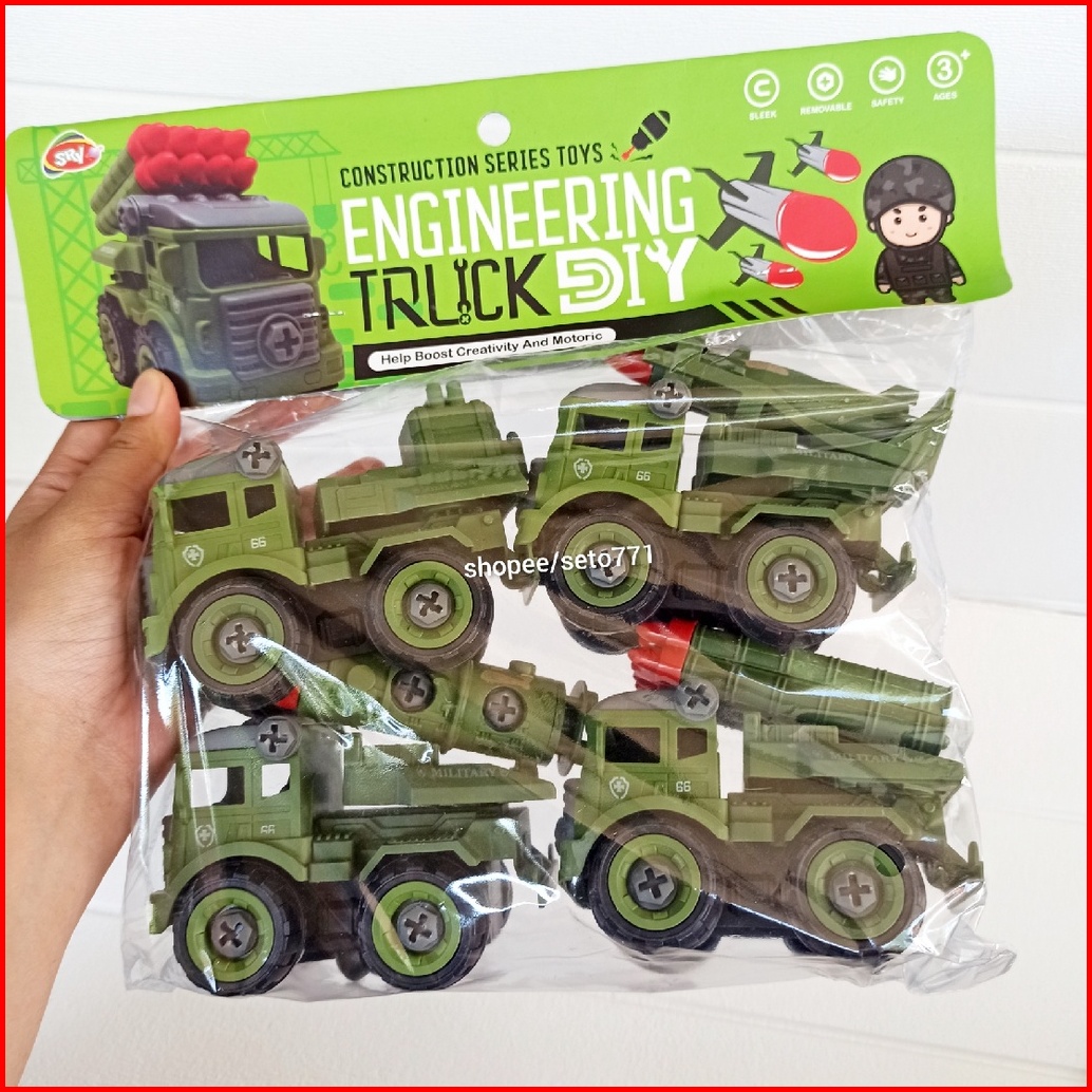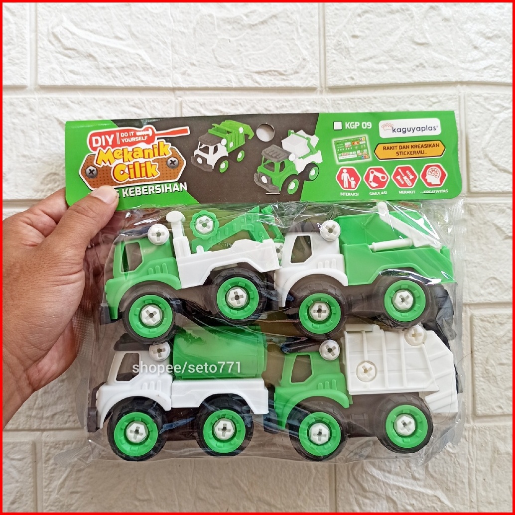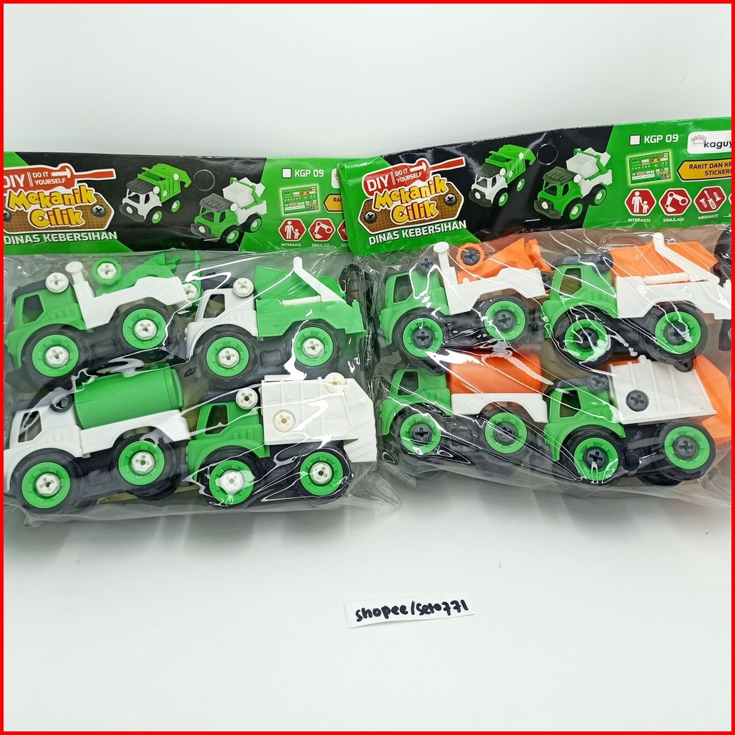 Diy Konstruksi 4pcs Do It Yourself Mainan Bongkar Pasang Mobil Puzzle Construction Puzle Crane Truk Kgp