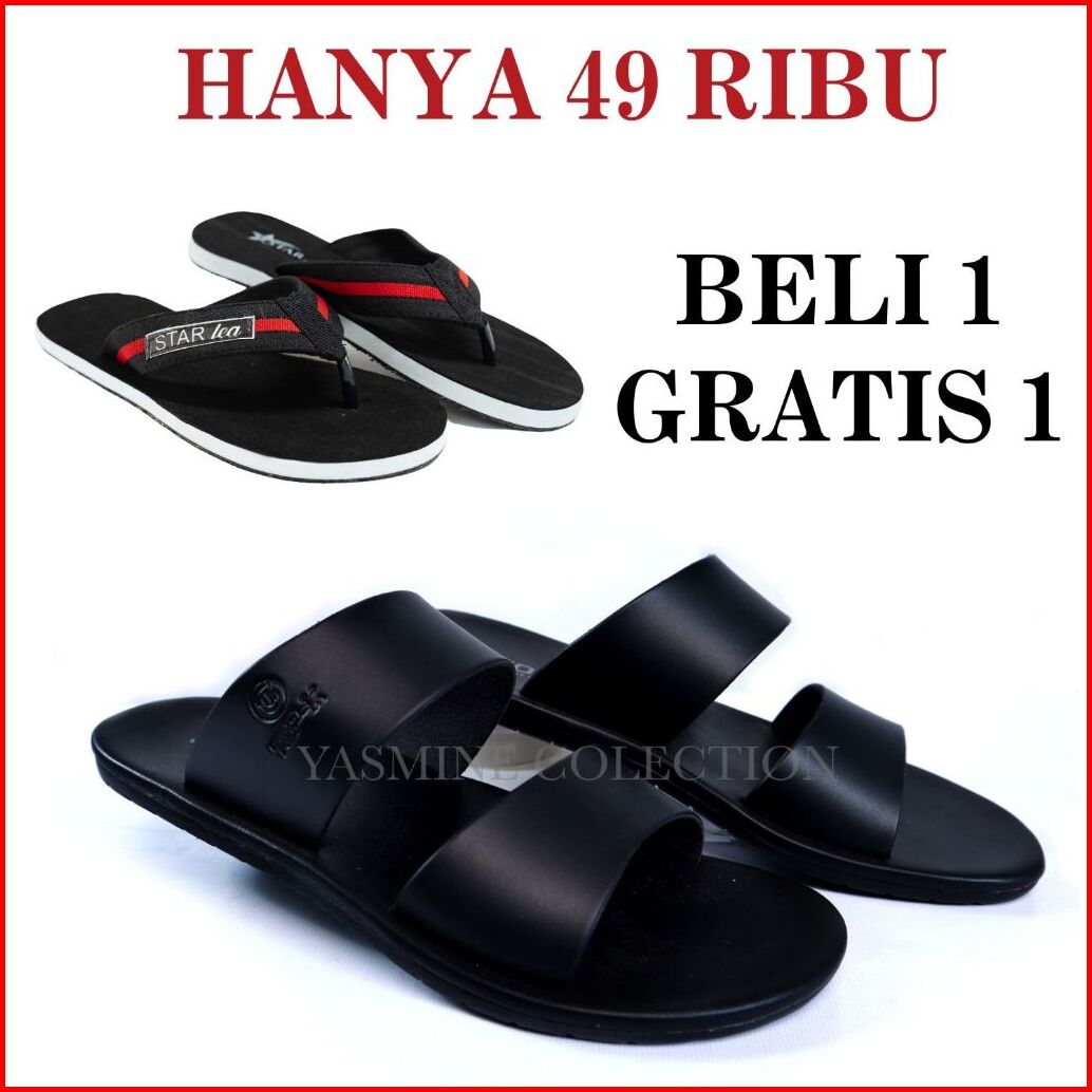 Sandal Slop Pria Beli 1 Dapat 2 Pasang Sandal Cowok Kasual Semi Outdoor Keren