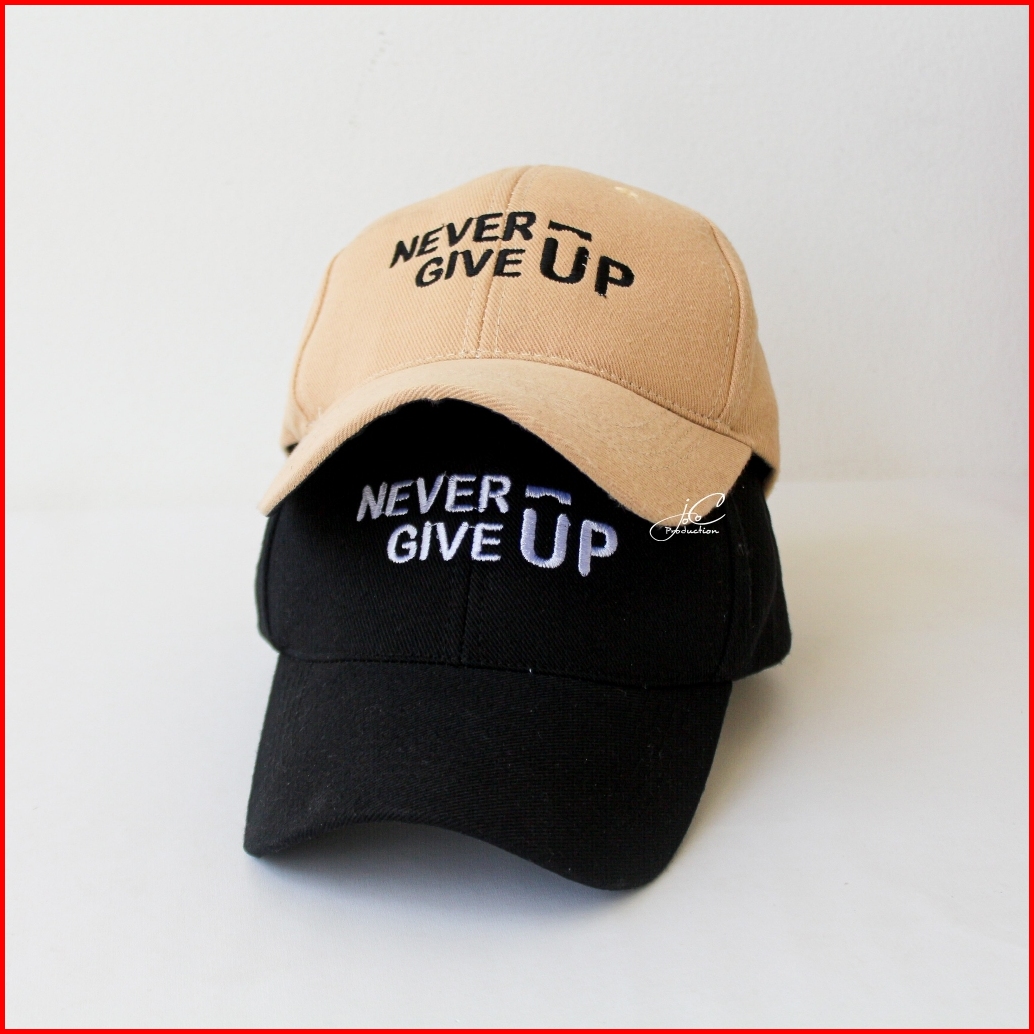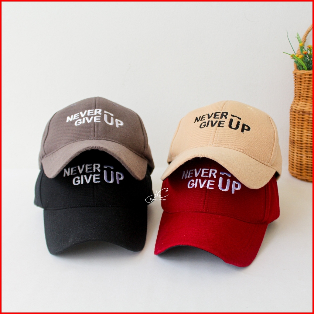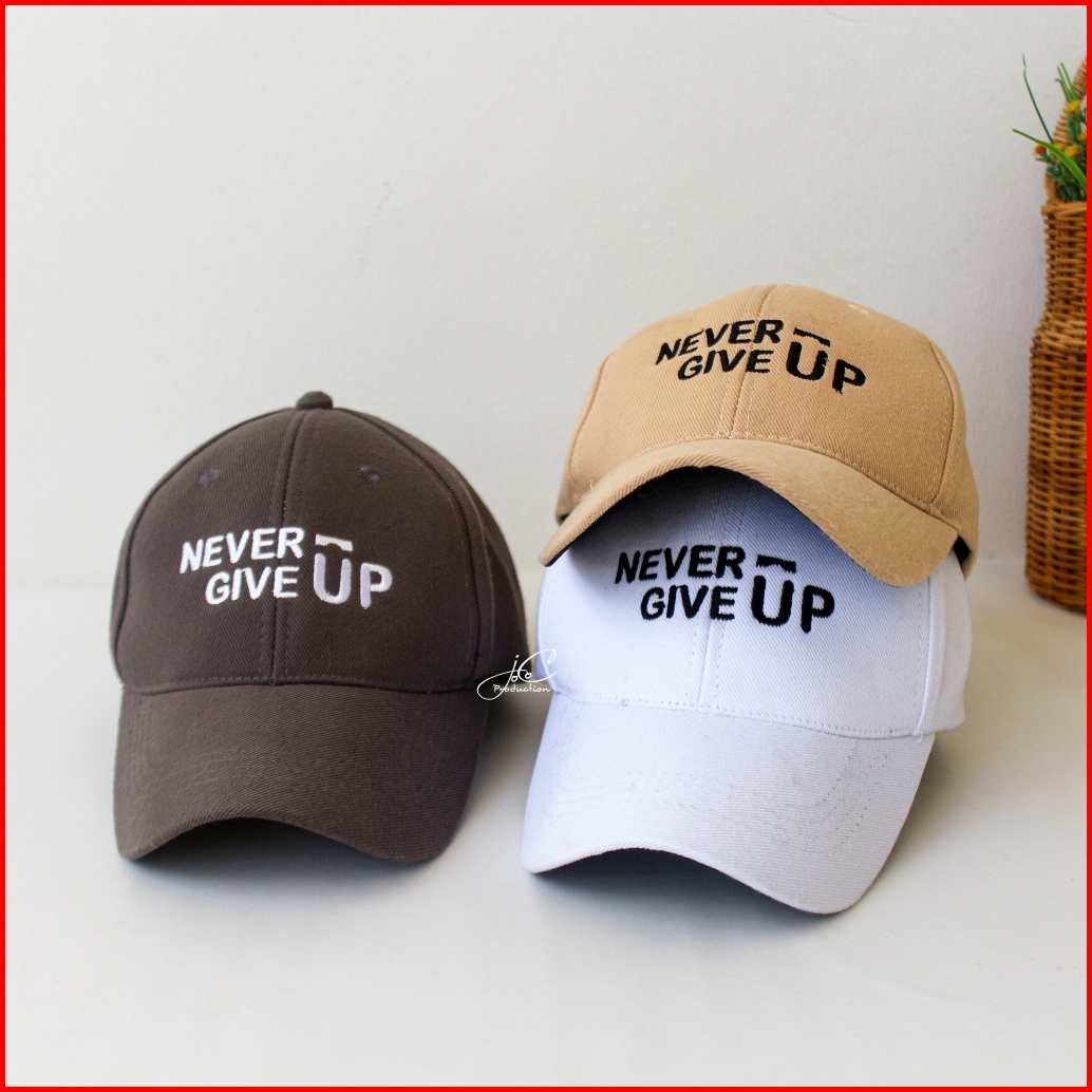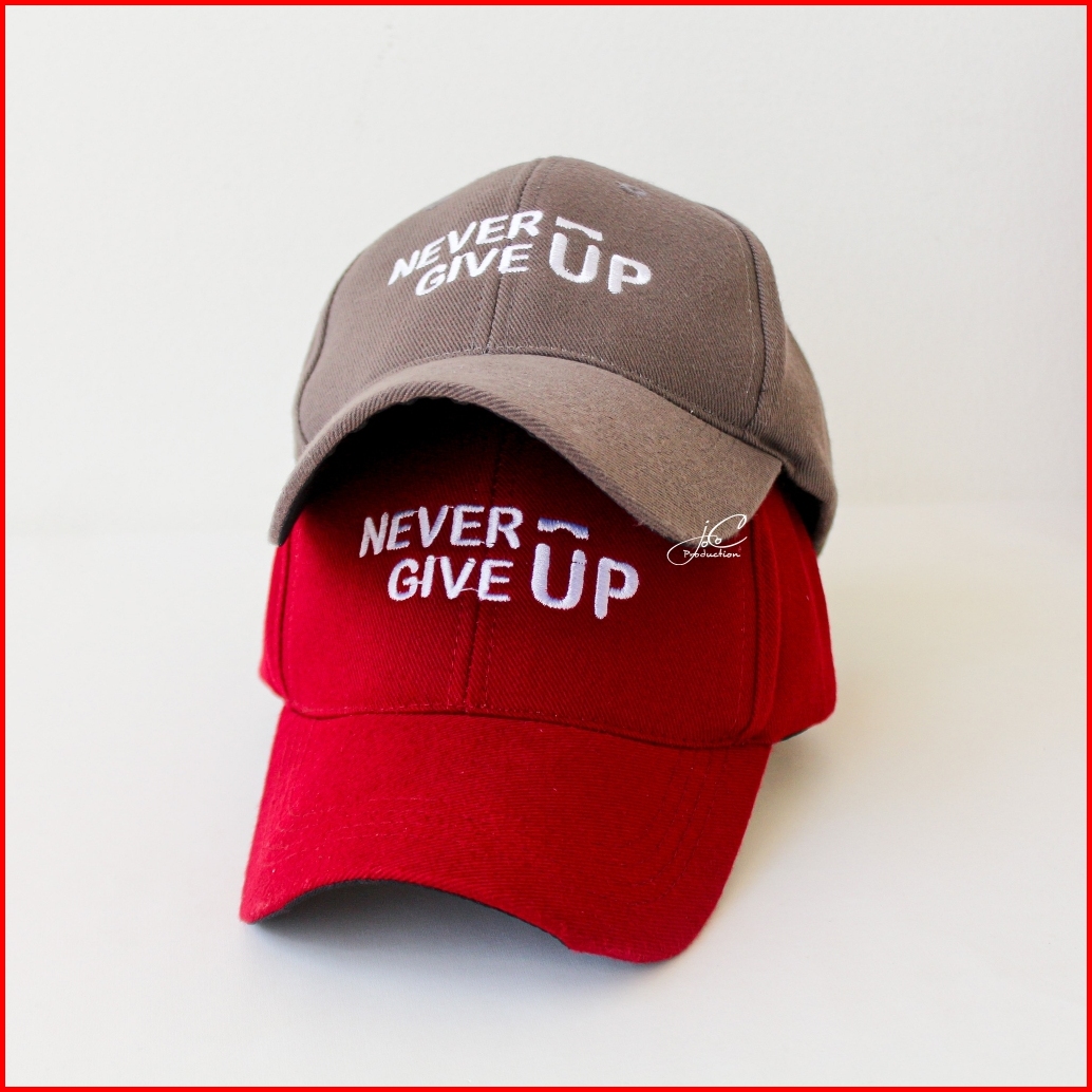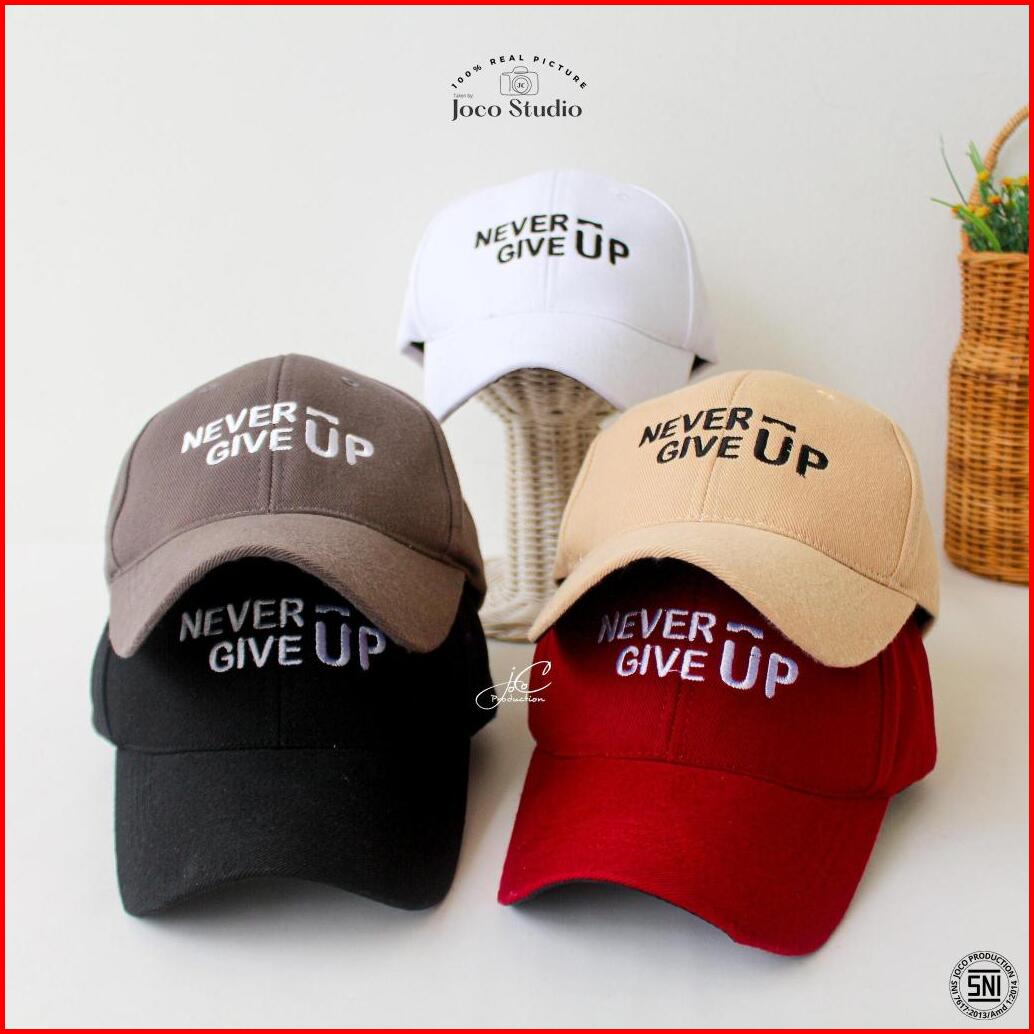 Jocoproduction - Topi Fashion Remaja Dewasa Unisex Topi Baseball Premium Bordir Never Give Up