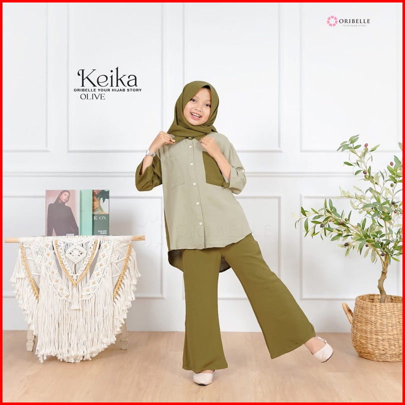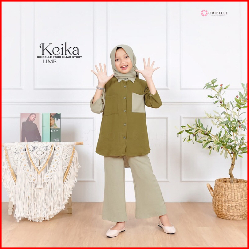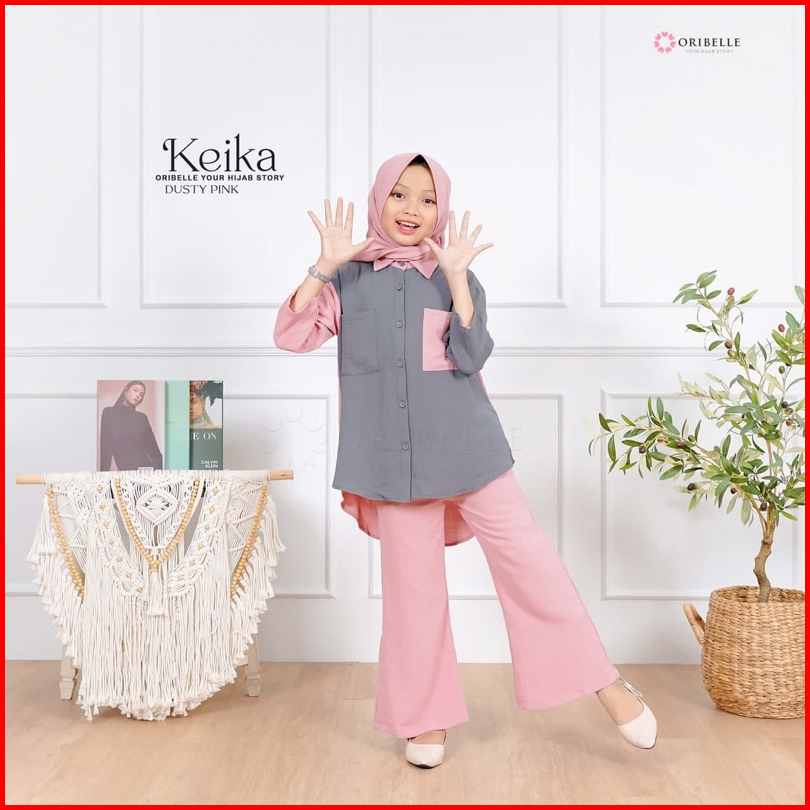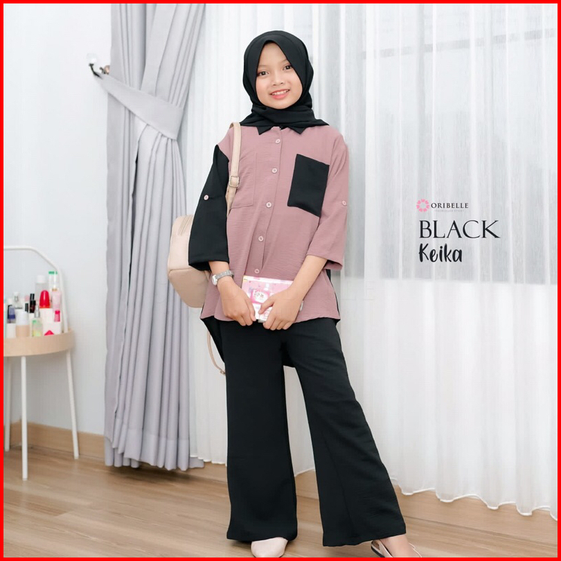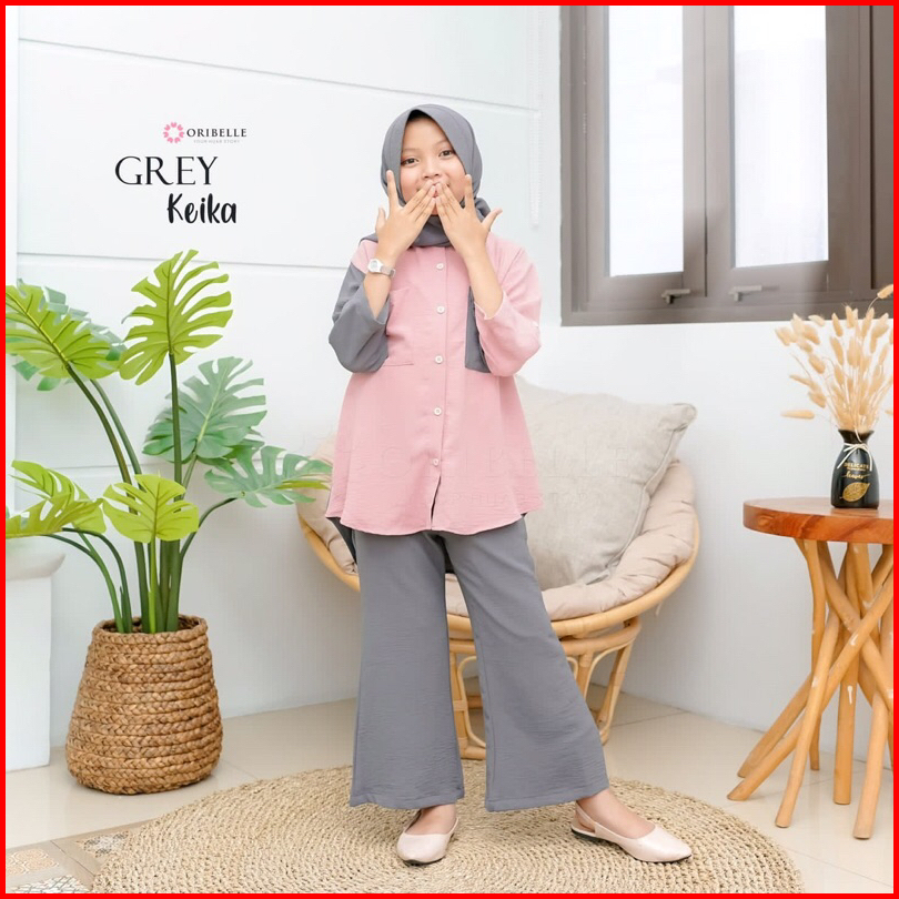 Terbaru Keika Kids Plus Phasmina Lone Set Polos Anak Perempuan Tanggung Bahan Crinkle Arflow Premium Setelan Anak Peremp