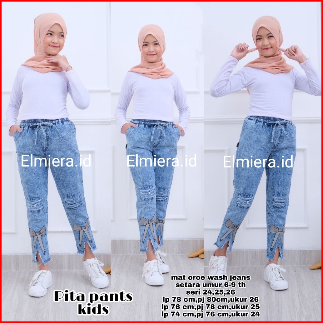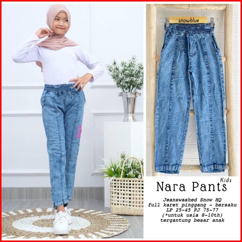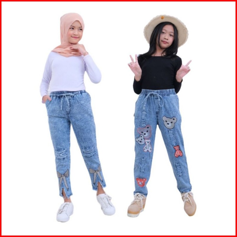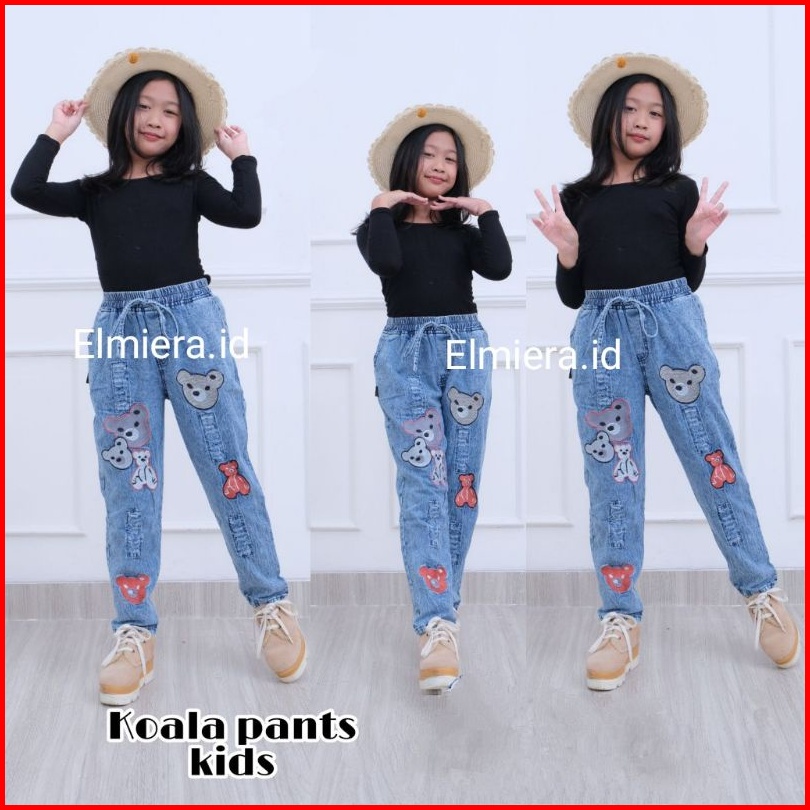 Celana Anak Perempuan Baggy Jeans Jinjong Jhody Pants Usia 2 Sampai 12 Tahun Blue Snow Bordir Boneka Koala Pita Bunga Ce