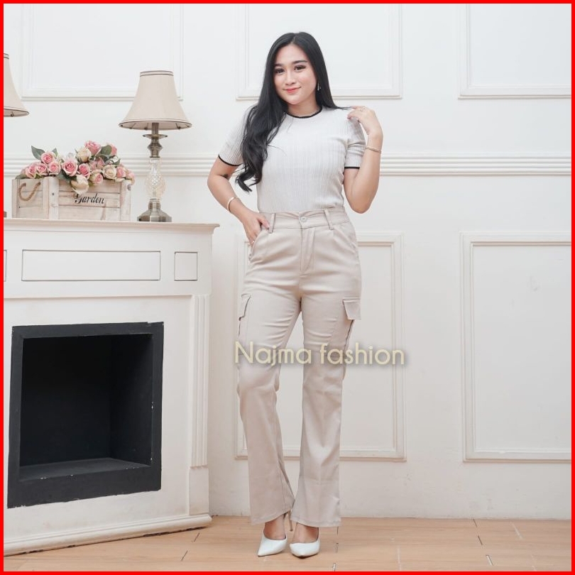 Celana Cutbray Cargo Wanita Twill Strecth Melar Premium