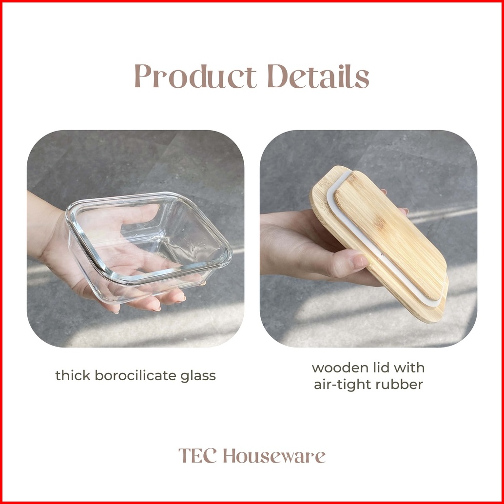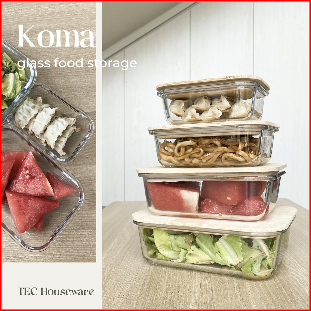 Produk Rumah Tangga Tec Koma Toples Kotak Bamboo Lid Cover Tempat Penyimpanan Makanan Kotak Penyimpanan Makanan Kulkas K