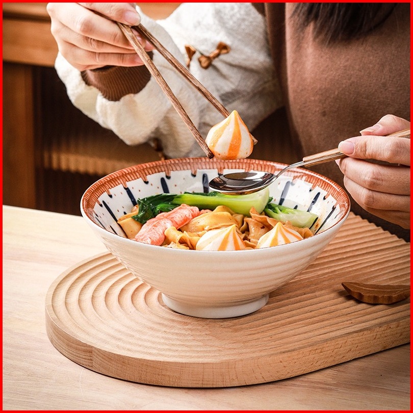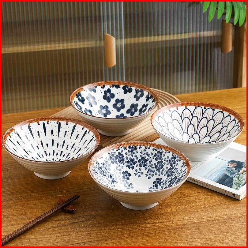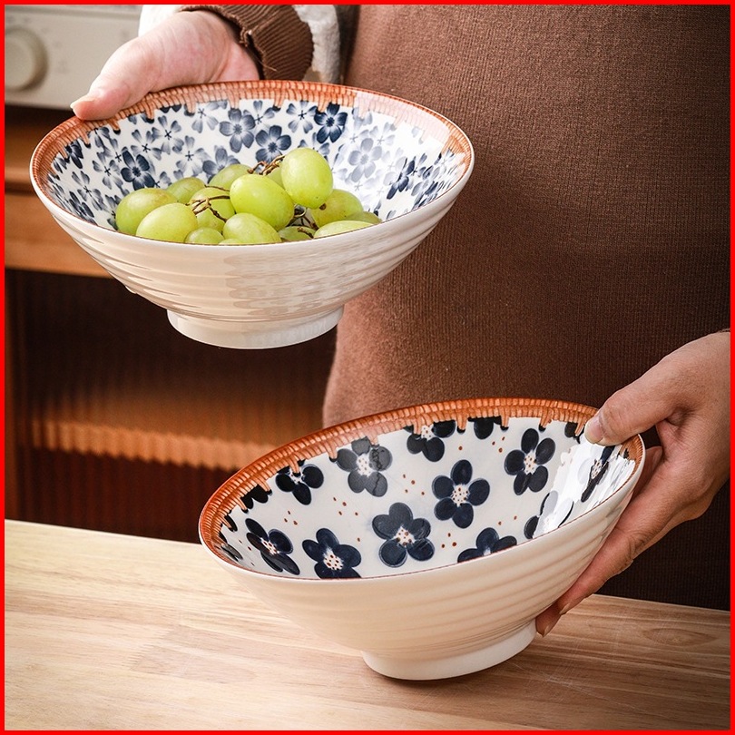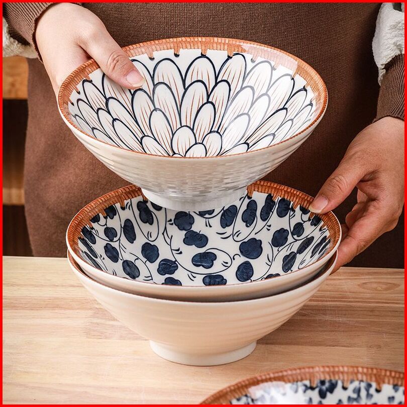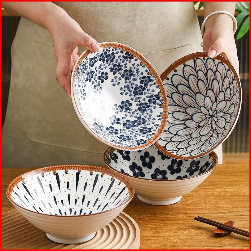 Ashome Mangkuk Ramen Retro Collection Ukuran 20 Cm Tahan Panas Dan Microwave Safe Mangkuk Retro Floral Aestetik Mangkuk