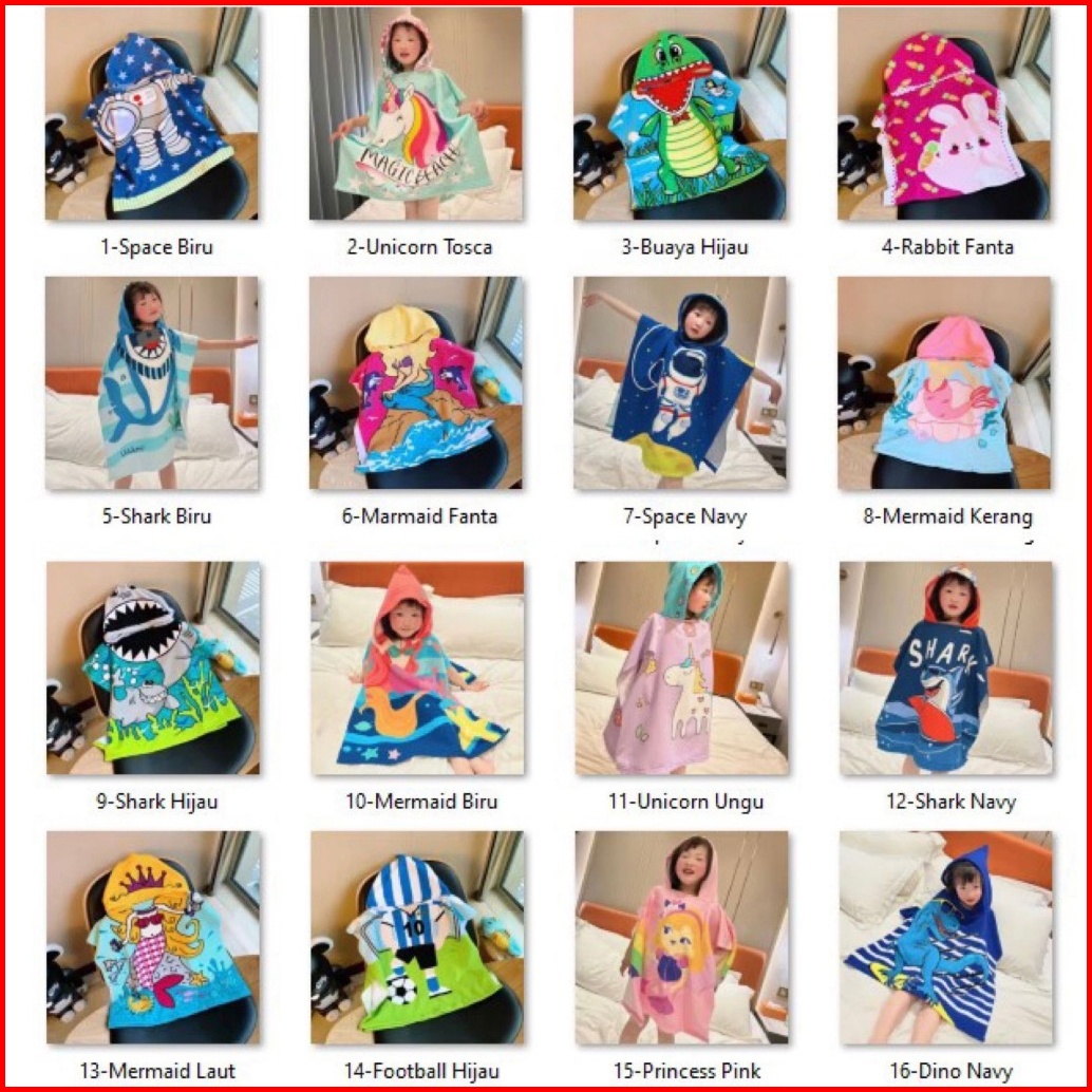 Iju204r Handuk Ponco Anak 60x120cm Karakter Handuk Anak Hoodie Towel