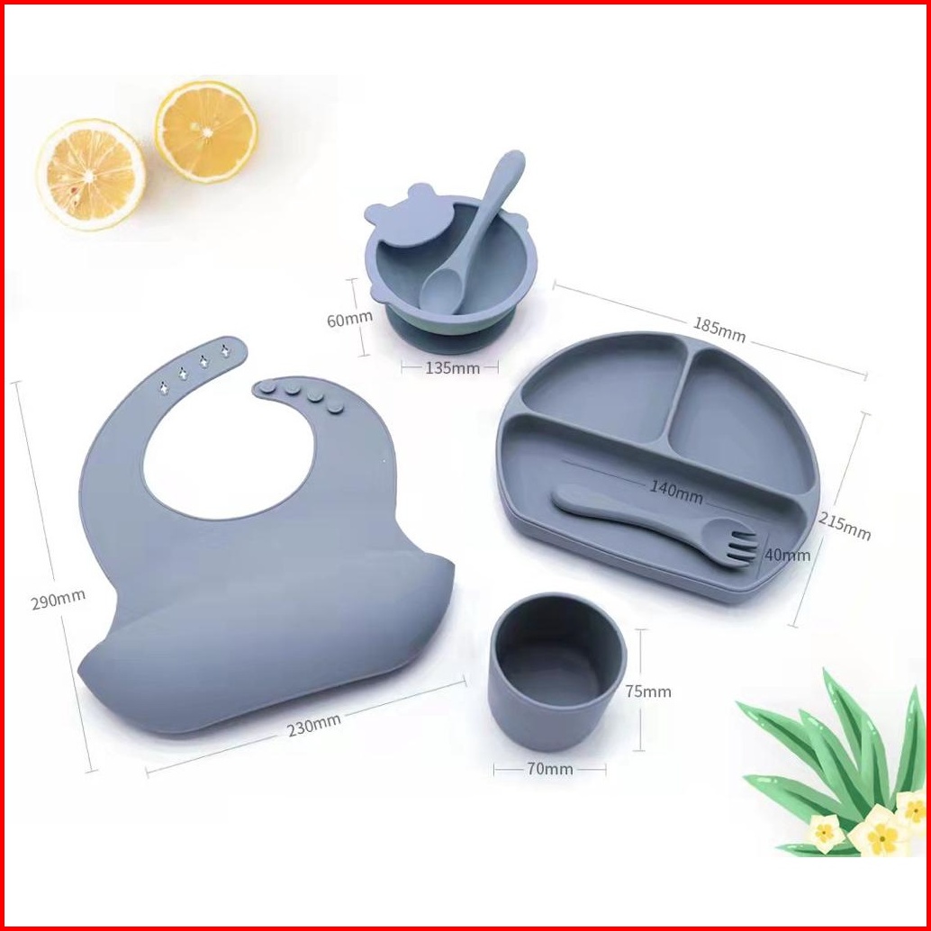 Keola - 6pcs Free Box Set Premium Silicone Gift Set Hampers Peralatan Makan Bayi Silicone