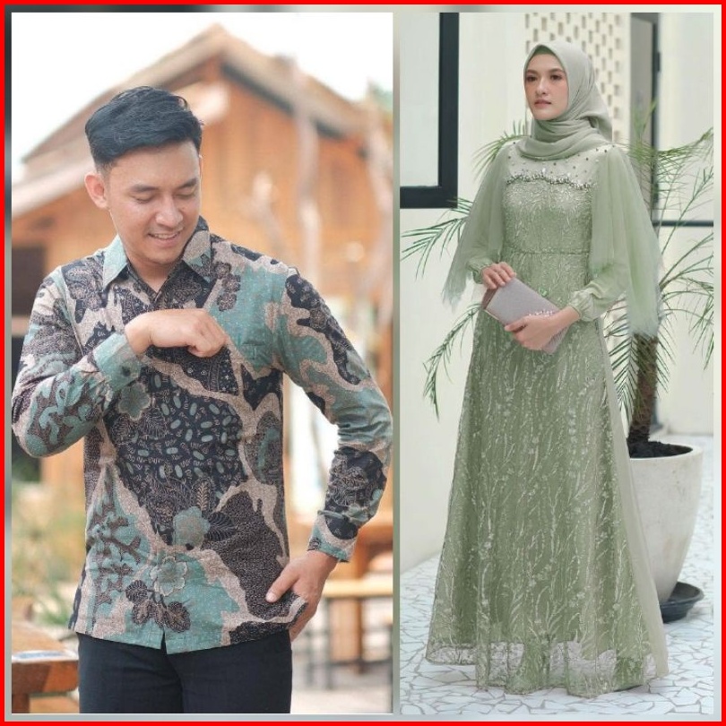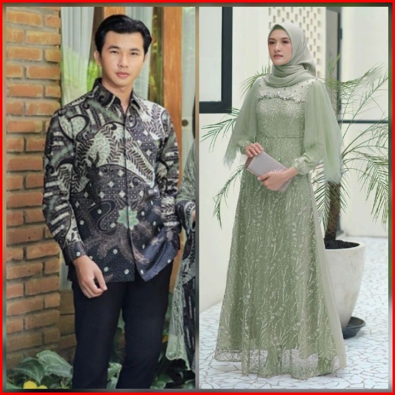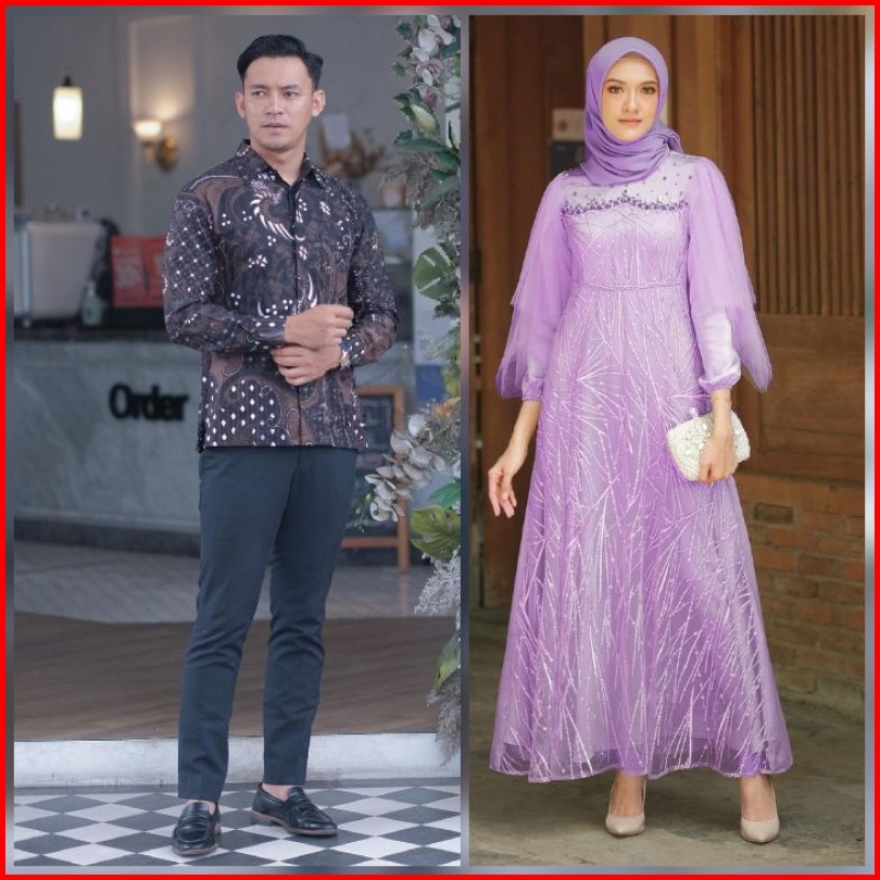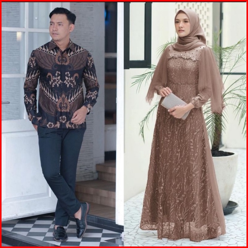 Couple Gamis Bruklat Maxi Brukat Tulle Modern Pesta Kondangan Outfit Lebaran Gamis Muslim Kekinian