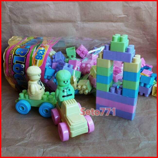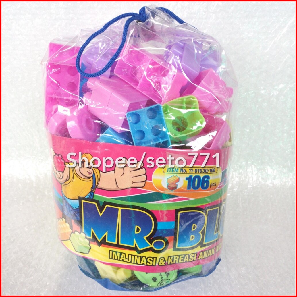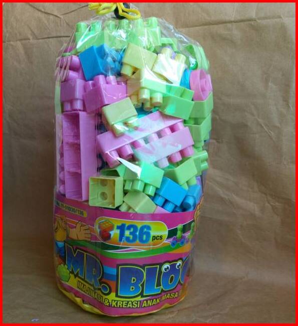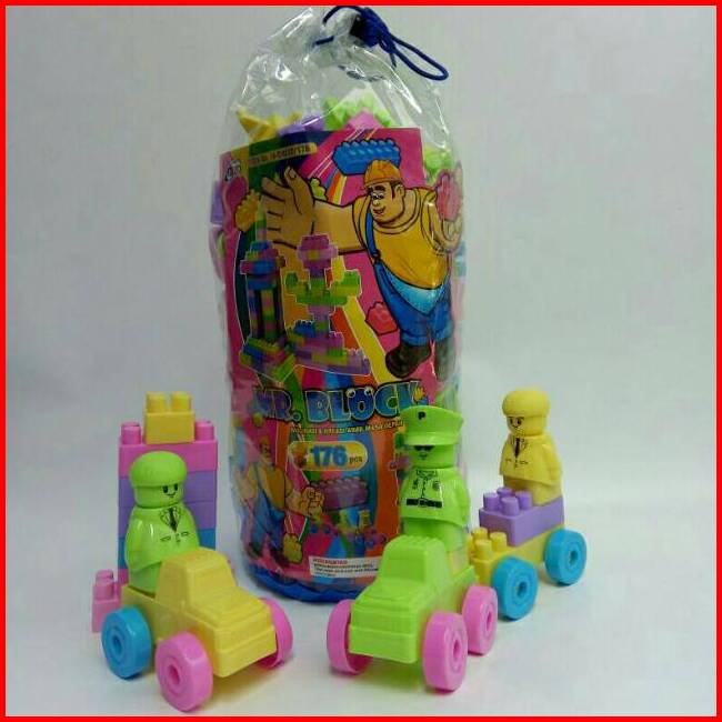 Mainan Anak Edukatif Blok Mr. Block Isi 176 136pcs Bongkar Pasang Edukasi Bricks Balok Brick