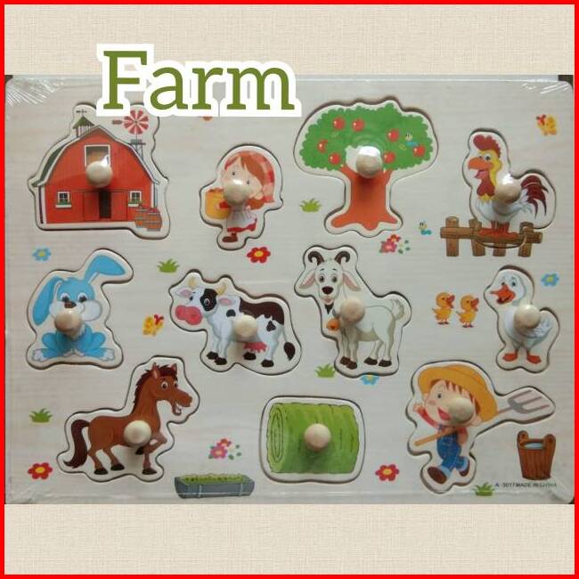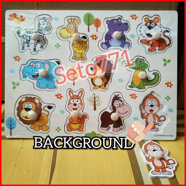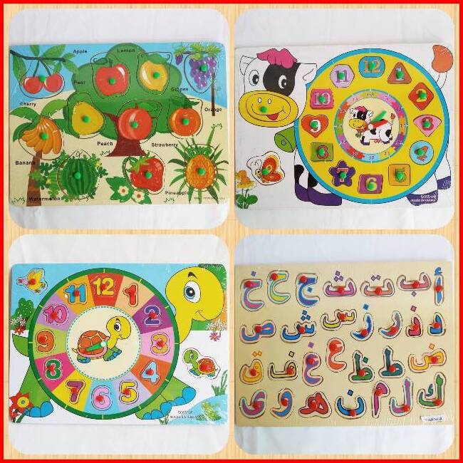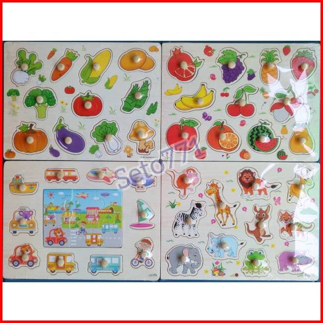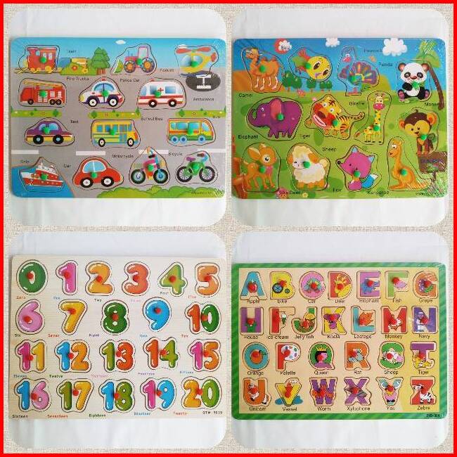 Mainan Anak Wooden Puzzle Kayu Background Hewan Transportasi Huruf Edukatif Jigsaw Puzle Knob