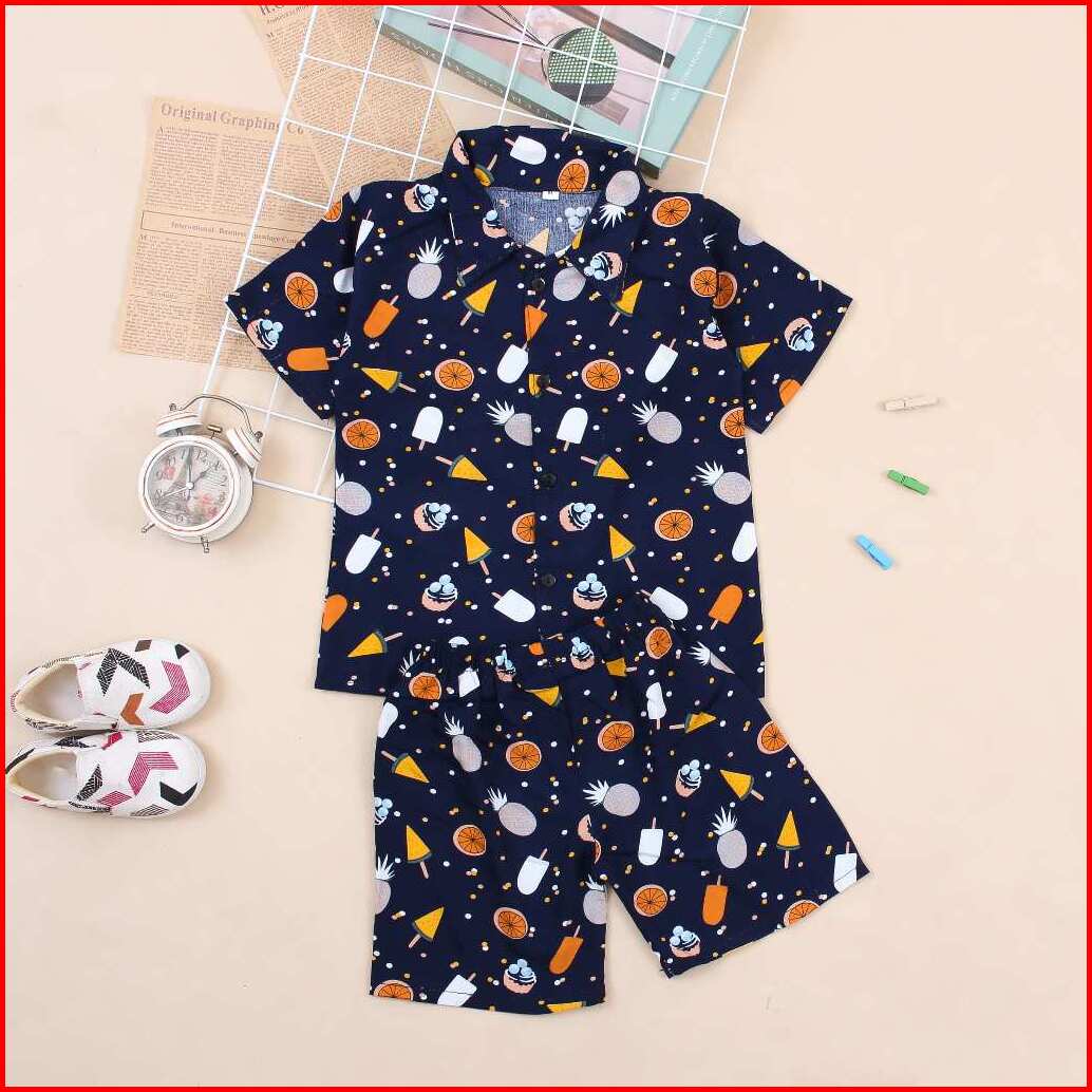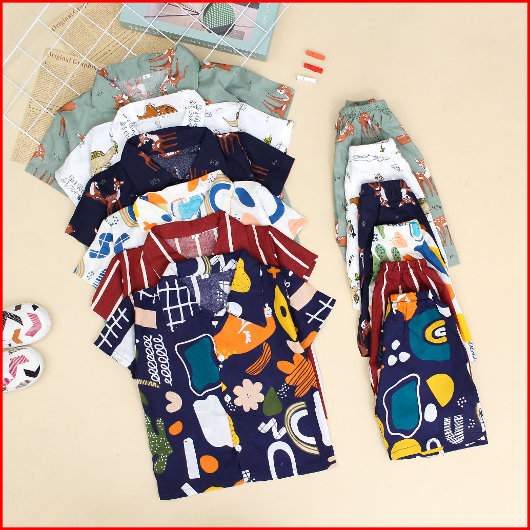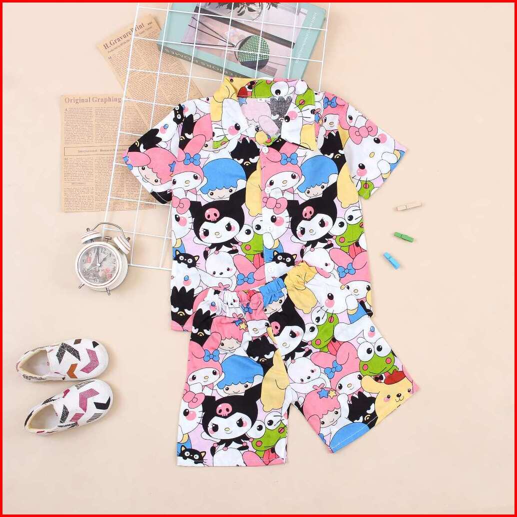 One Set Rayon Anak Set Rayon Kids 1-5th Piyama Anak Rayon Daily Wear Pajamas