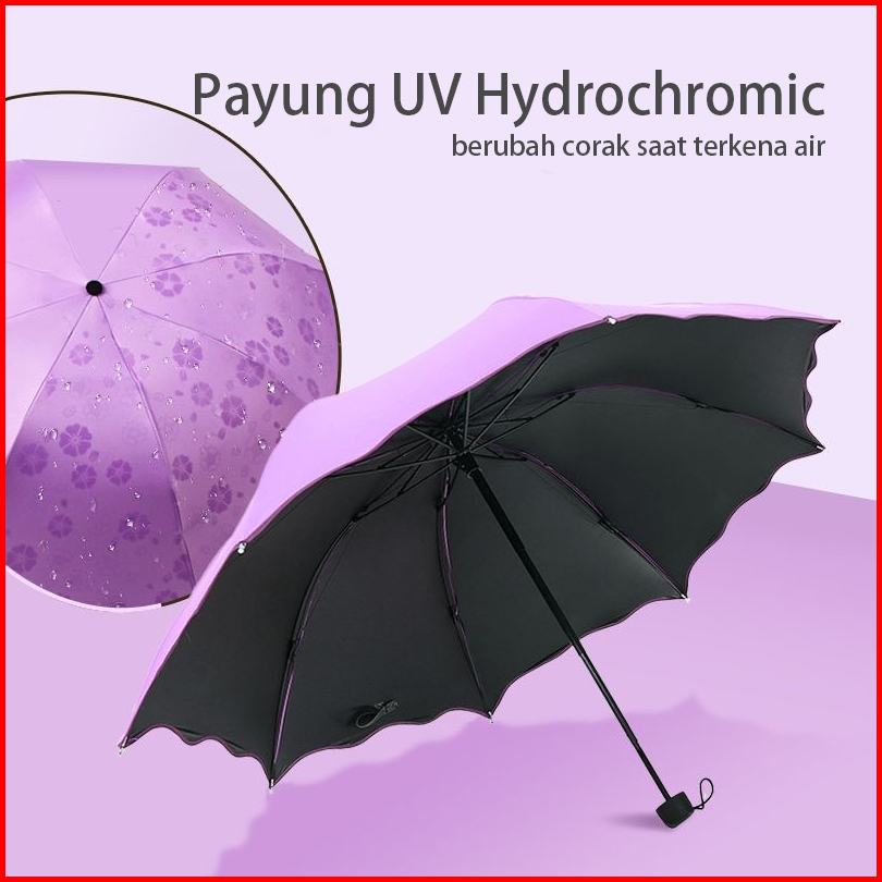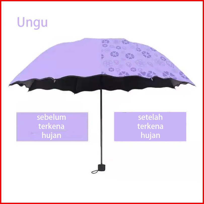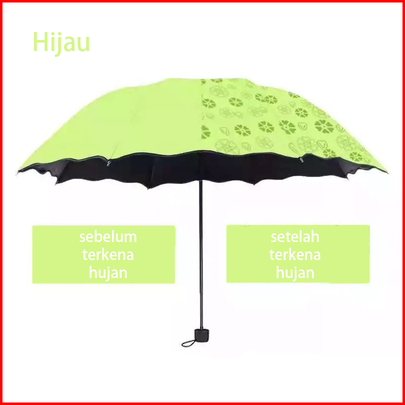 Payung Lipat Uv Berubah Corak Hydrochromic Panas Matahari Hujan
