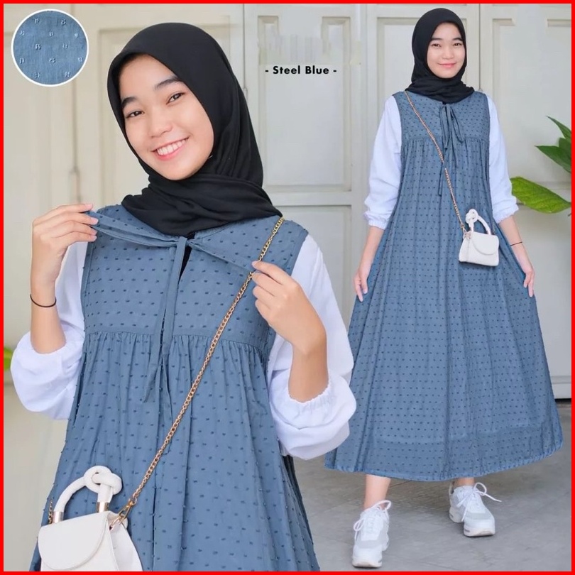 Baju Gamis Anak Tanggung Cingkle Dot Premium Mix Wollycrepe Luan Dress Anak Usia 10-16 Tahun Dress Crinkle Terbaru 2022
