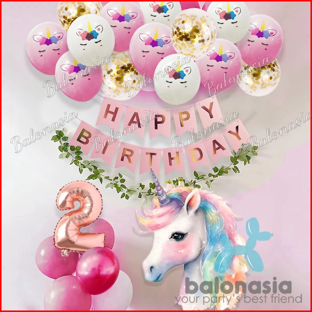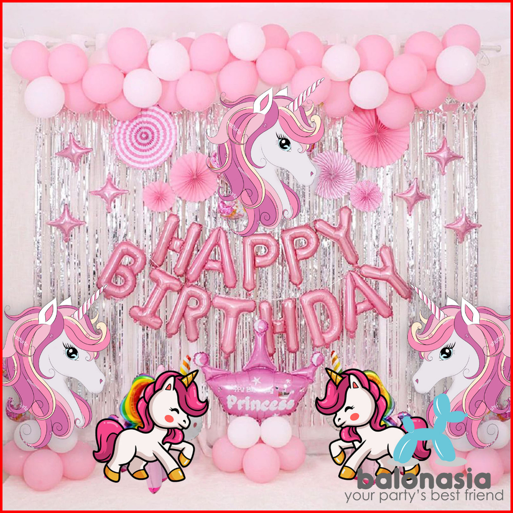 Balonasia Balon Foil Unicorn Set Pink Lengkap