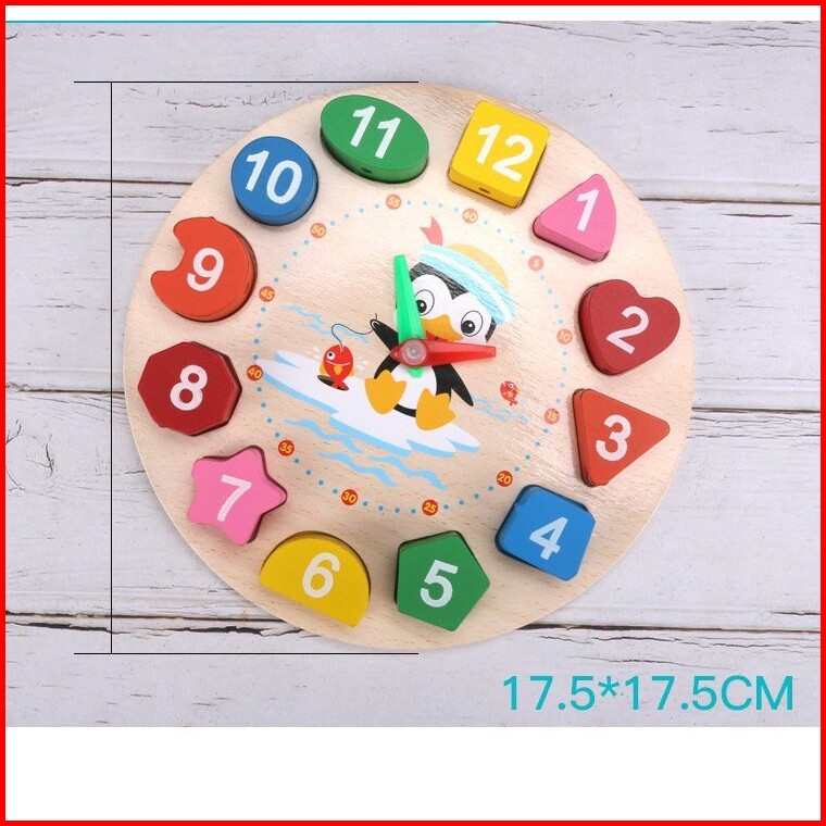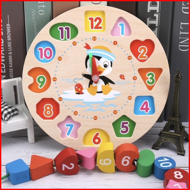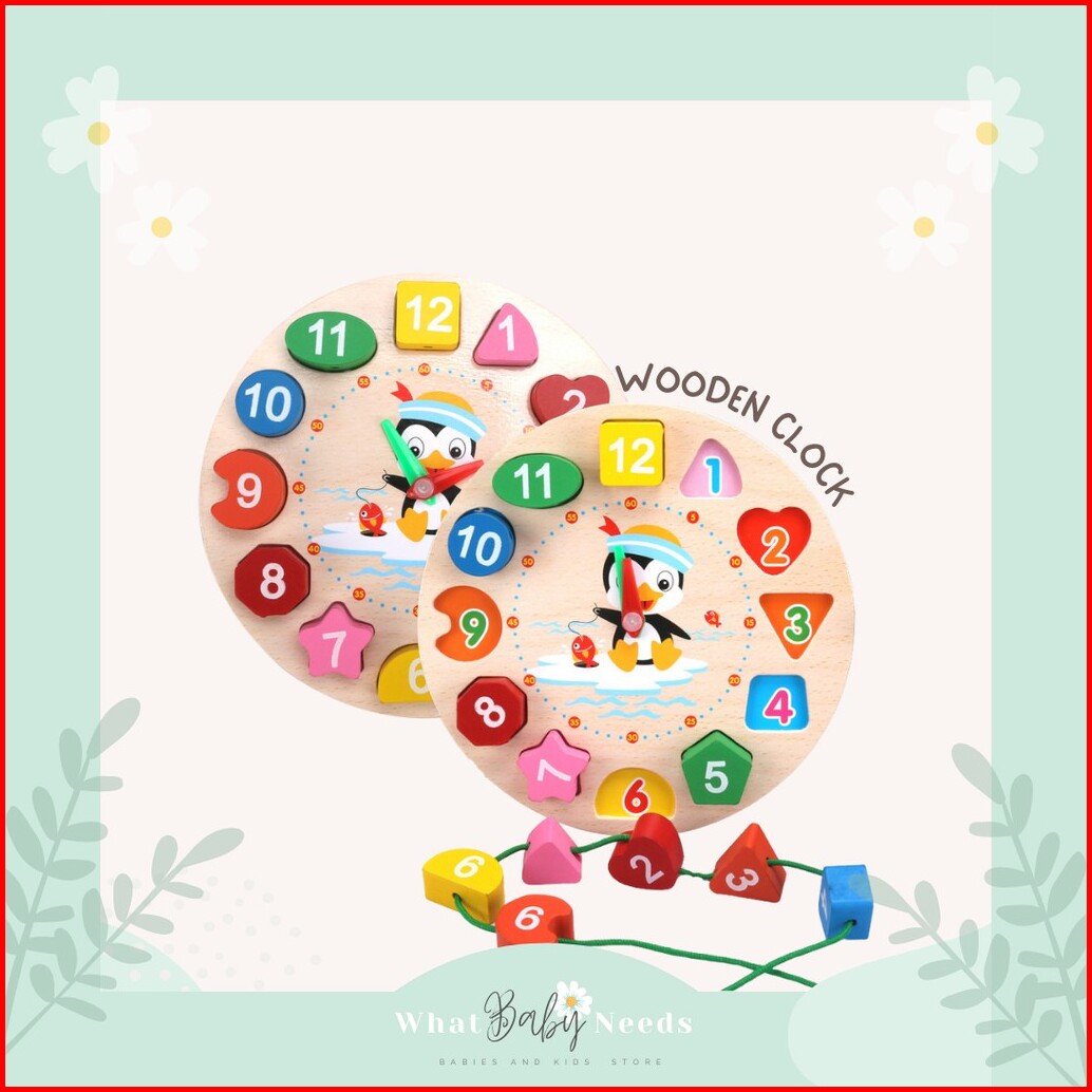 Wooden Clock Puzzle Mainan Edukasi Geometri Jam Kayu Balok