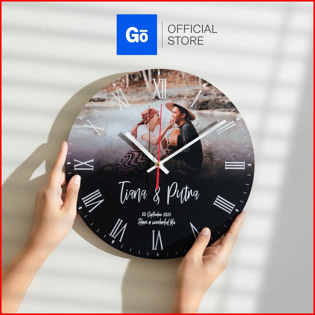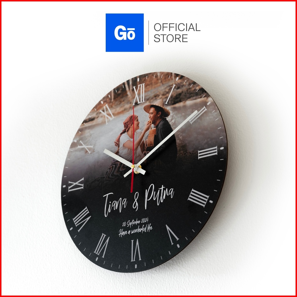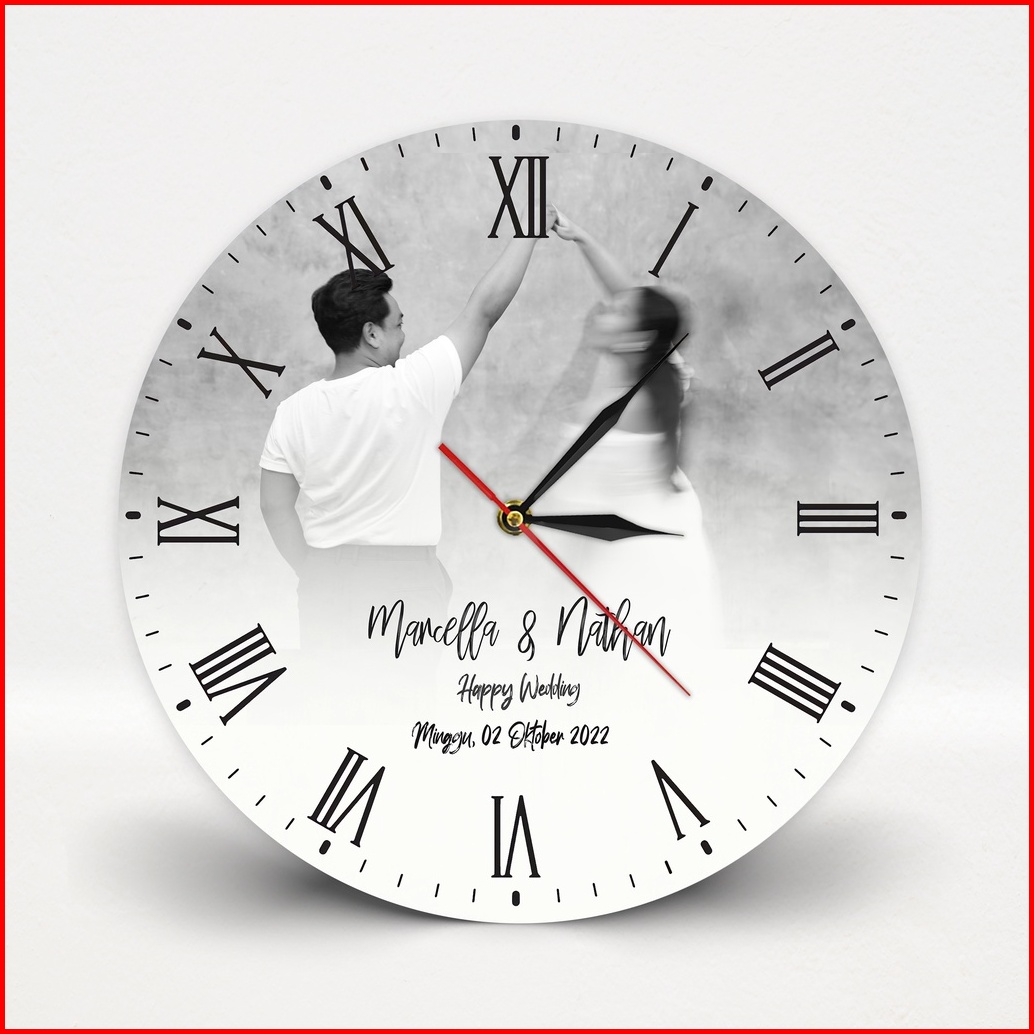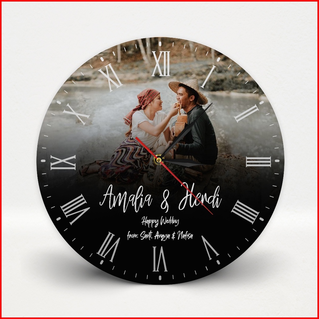 Goovi Jam Dinding Kayu Custom Nama Dan Foto Hadiah Wedding Kado Pernikahan Anniversary - Fwbs