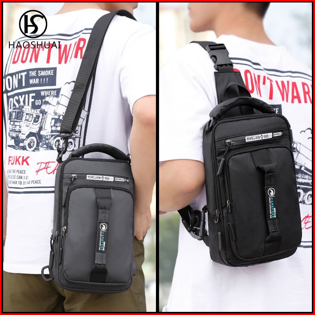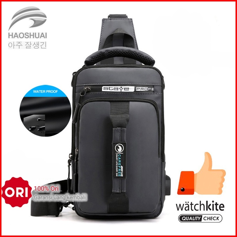 Tas Selempang Pria Wanita Haoshuai 1100-1 Waistbag Pria Waterproof Baeos