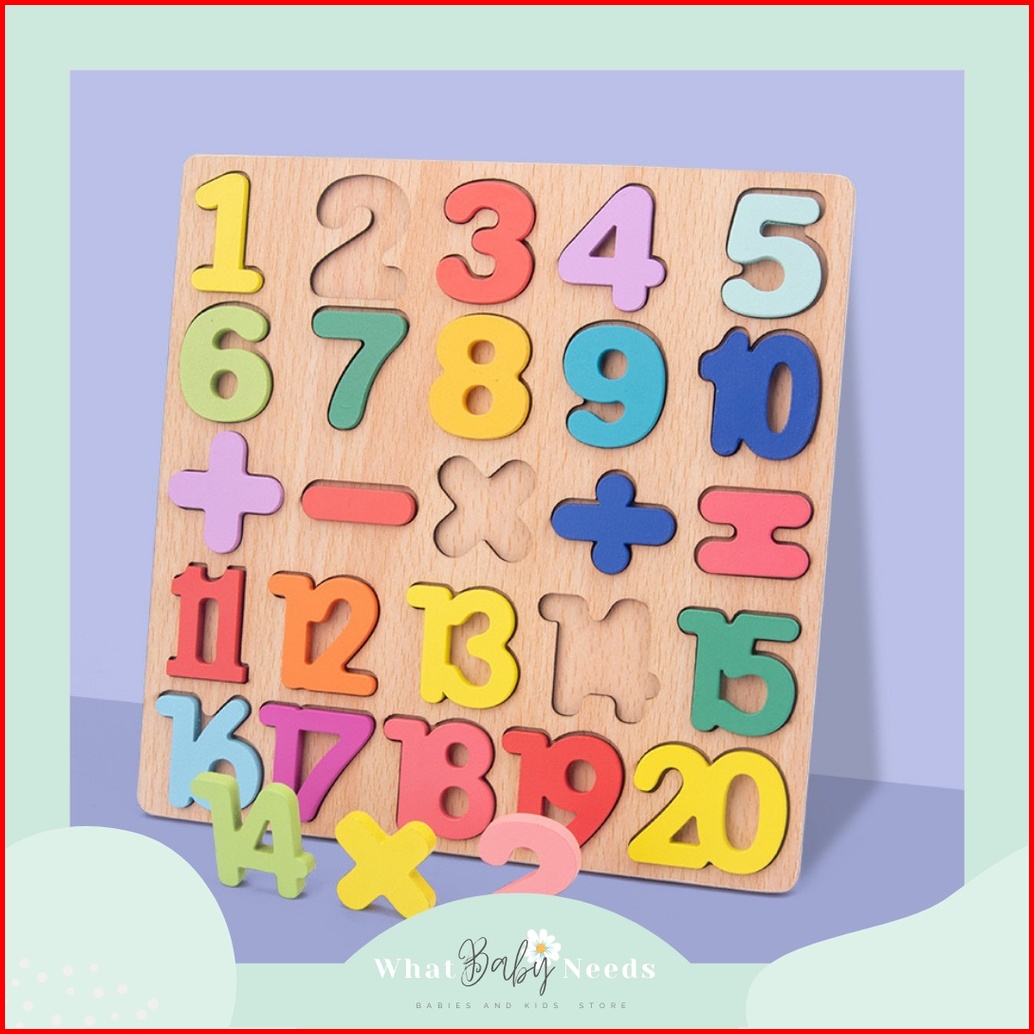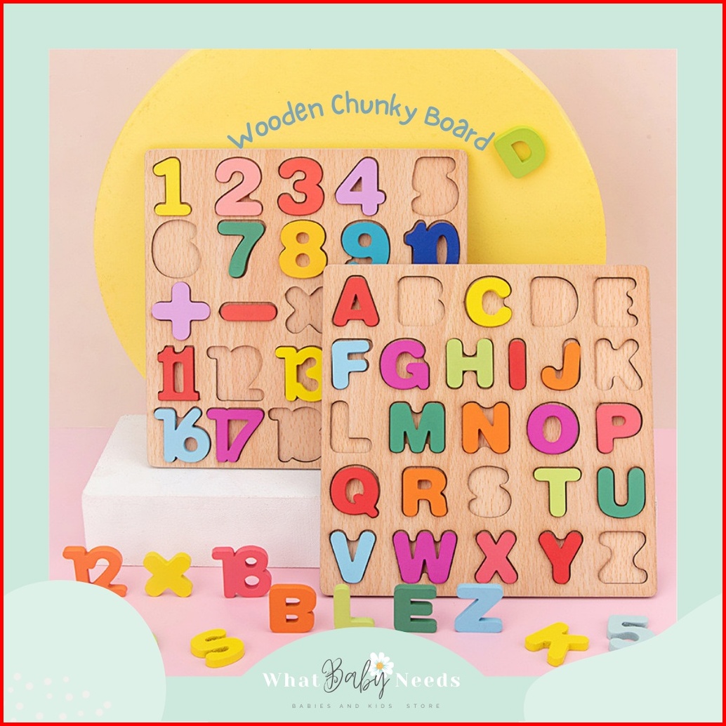 Puzzle Kayu Mainan Edukasi Papan Puzzle Alfabet Dan Angka Anak Wooden Chunky Board