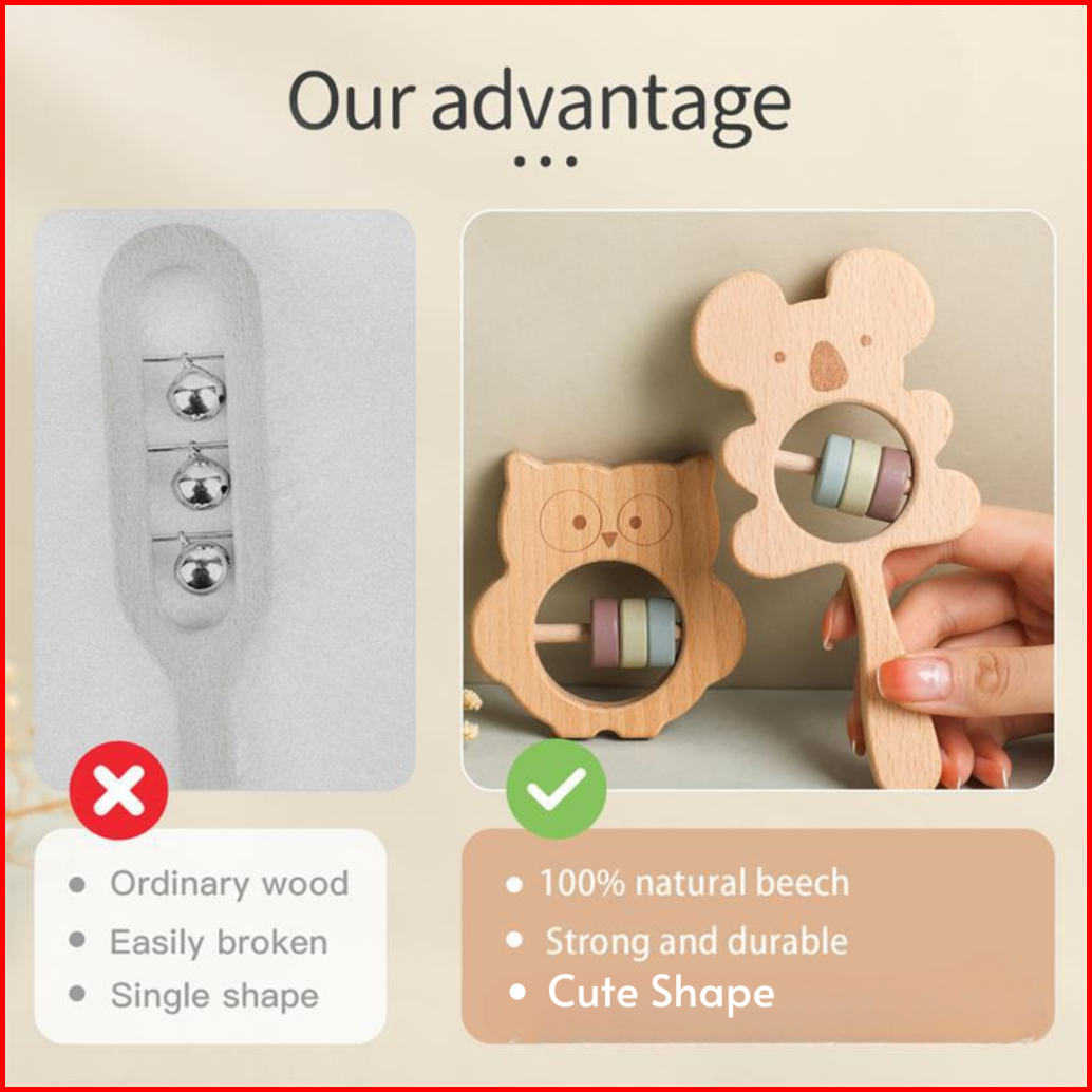 Ophelia Wooden Baby Hand Rattle Mainan Genggaman Tangan Bayi Musik Teether
