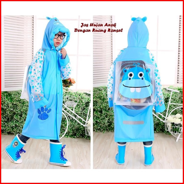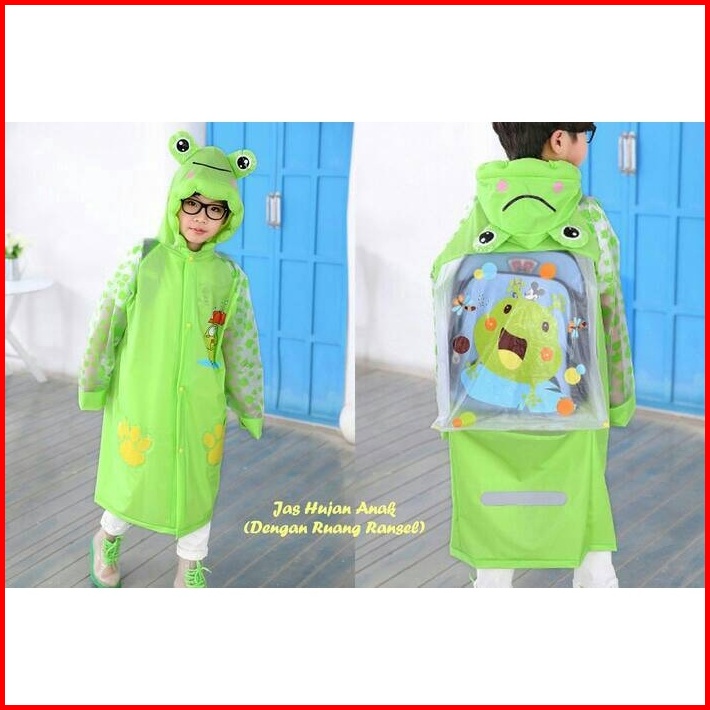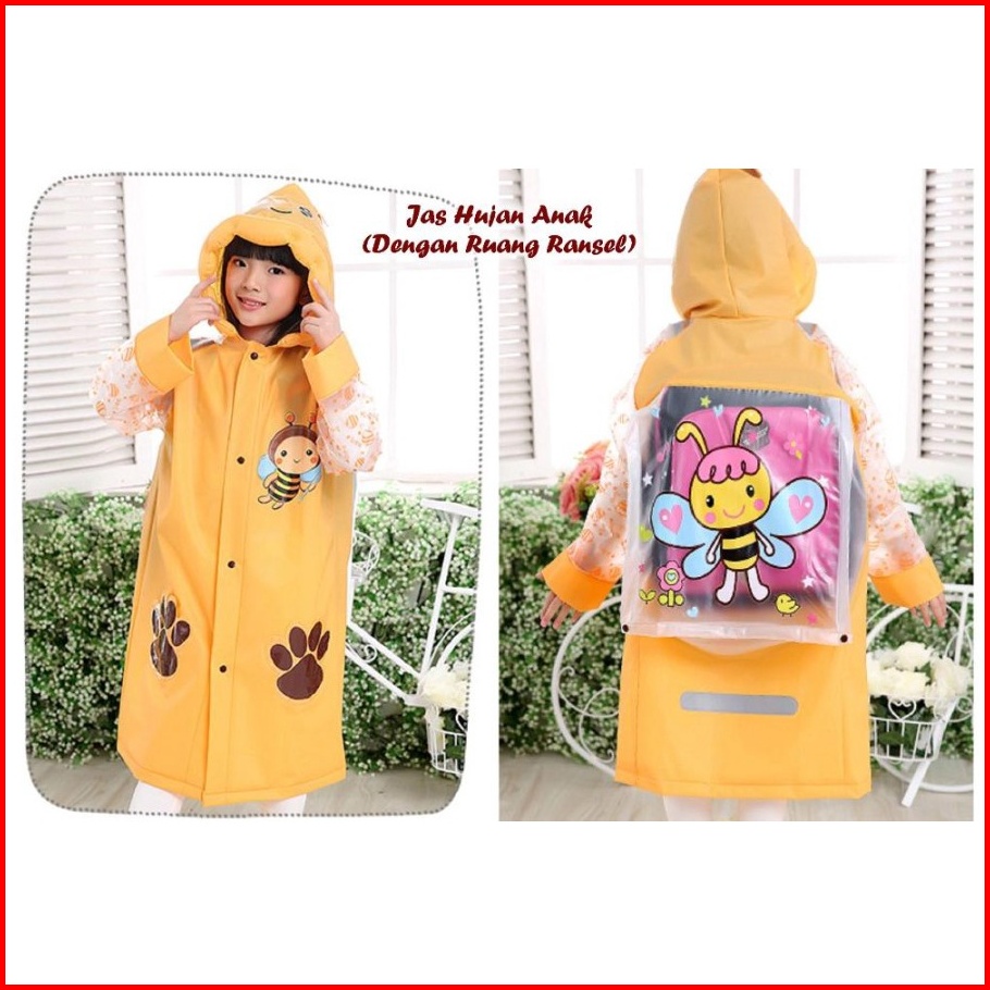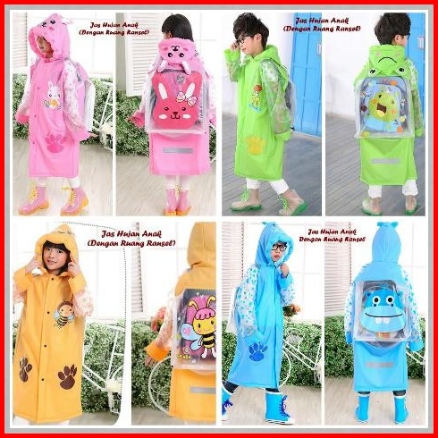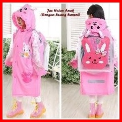 Jas Hujan Raincoat Tanpa Celana Anak Karakter Tas Ransel Backpack