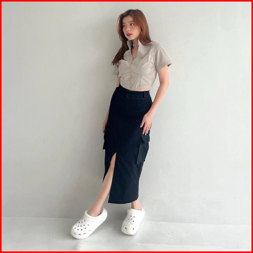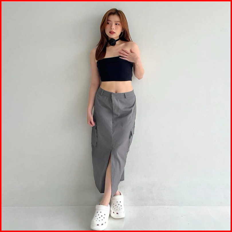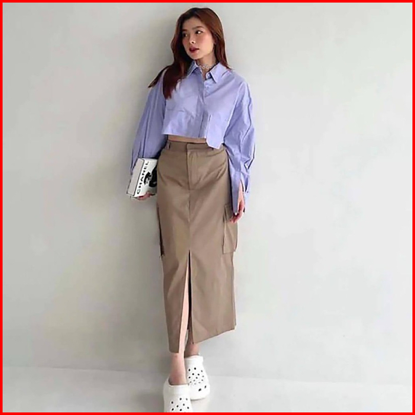 Rok Cargo Belah Tengah Korean Skirt Rok Cargo Belah Depan Cargo Skirt Kenzy Skirt Katun Twill