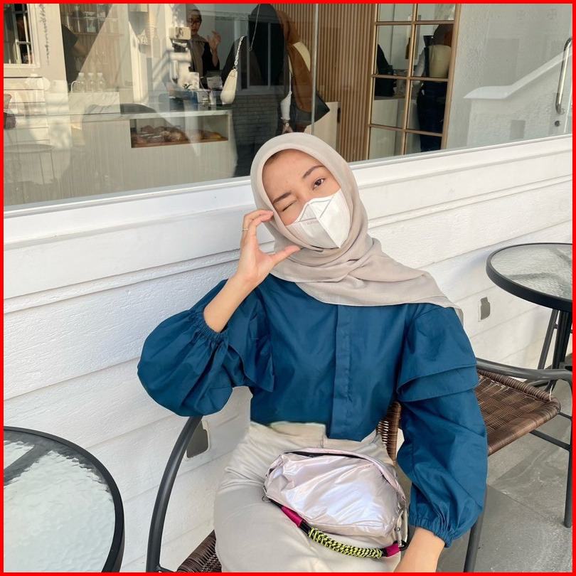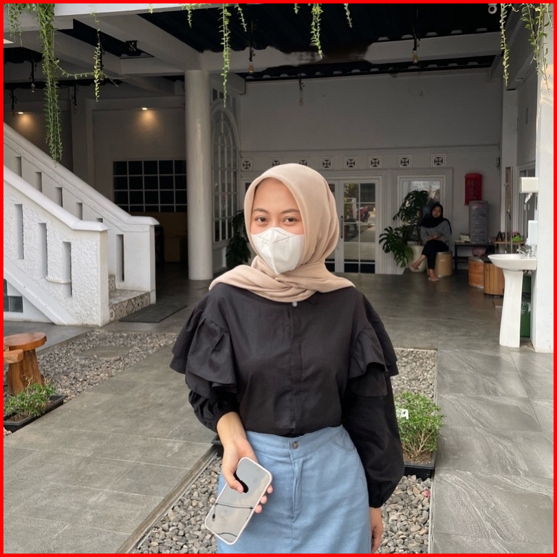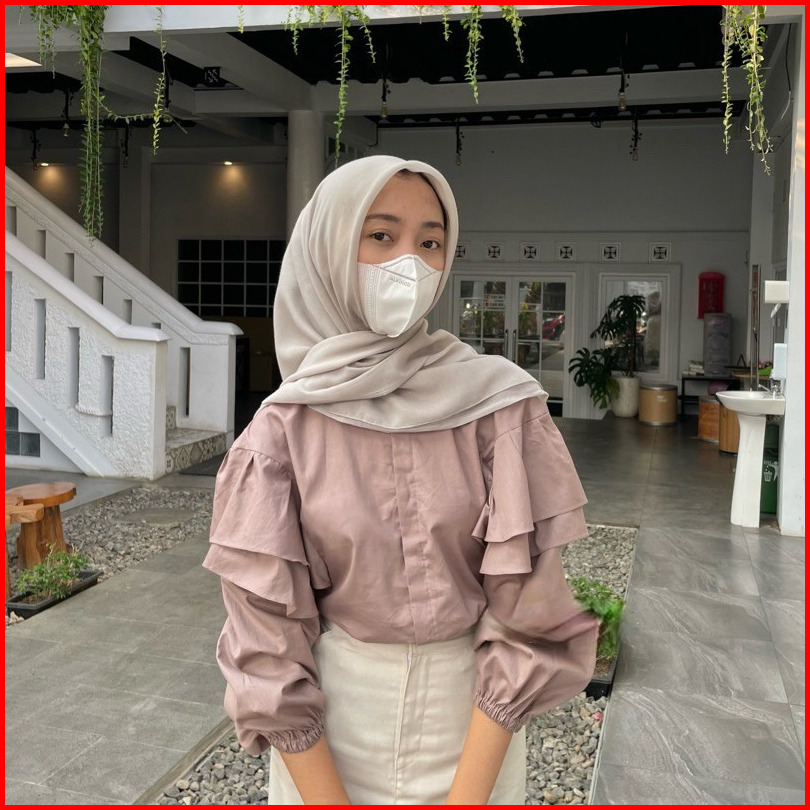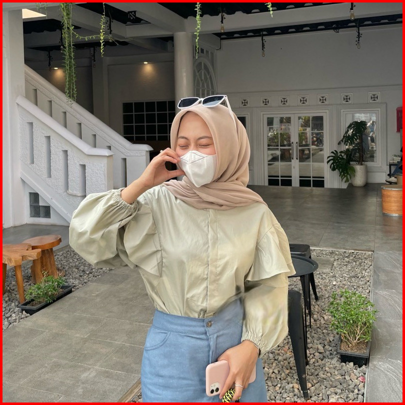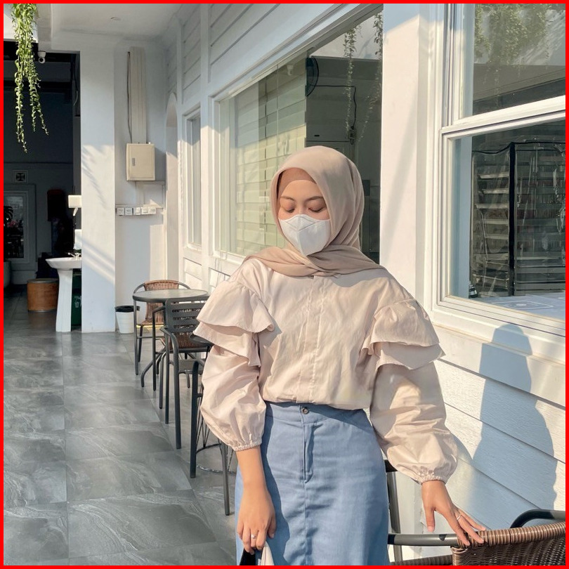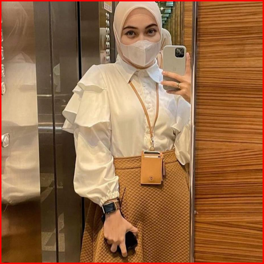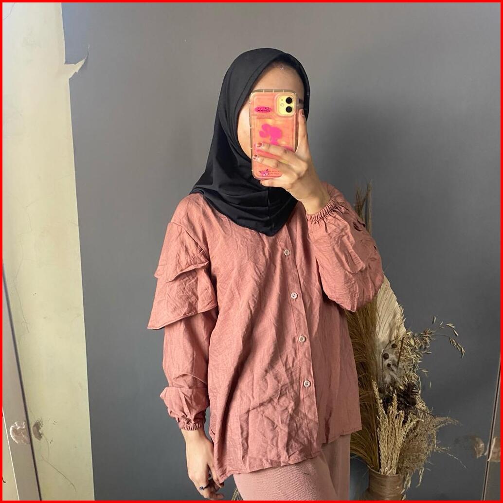 Emweha Blouse Wanita Kekinian Polo Linen Lengan Panjang Ruffle Emily Atasan Wanita Polos