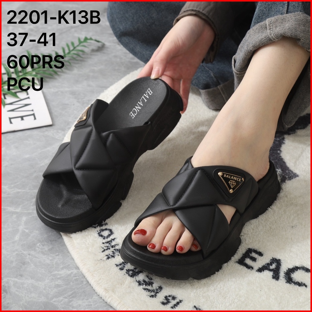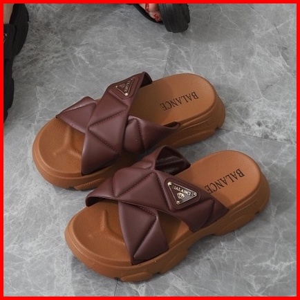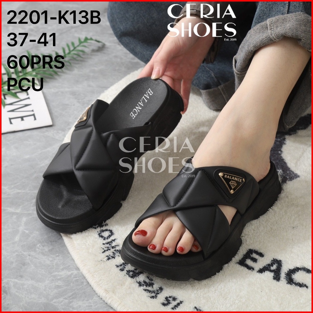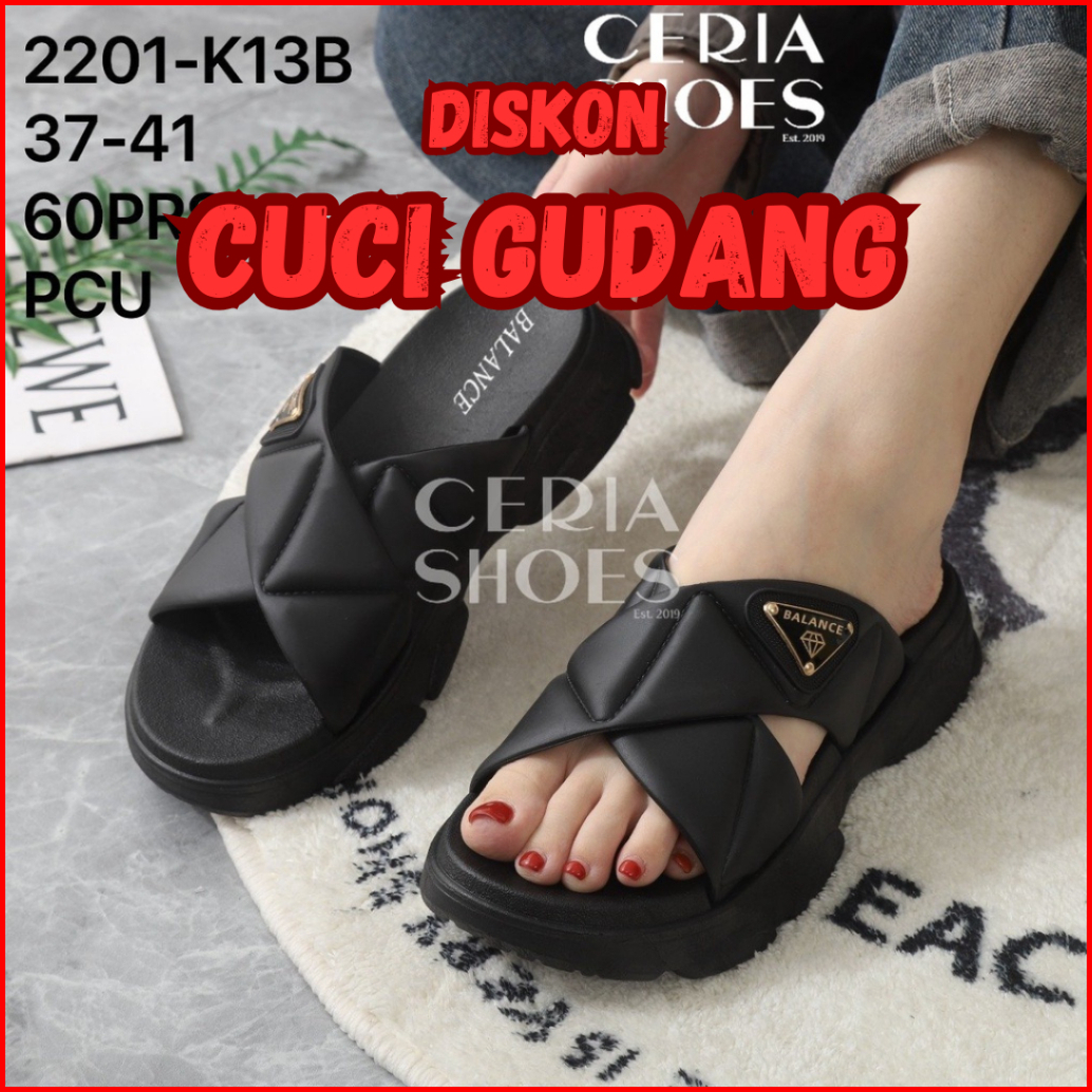 Sale Sandal Slop Wanita Karet Import Hak Tebal Motif Diamond Pin Sol Rubber Anti-slip Empuk Elastis Balance K13