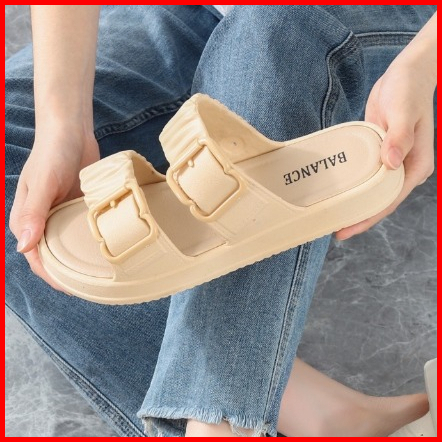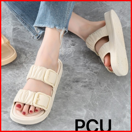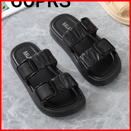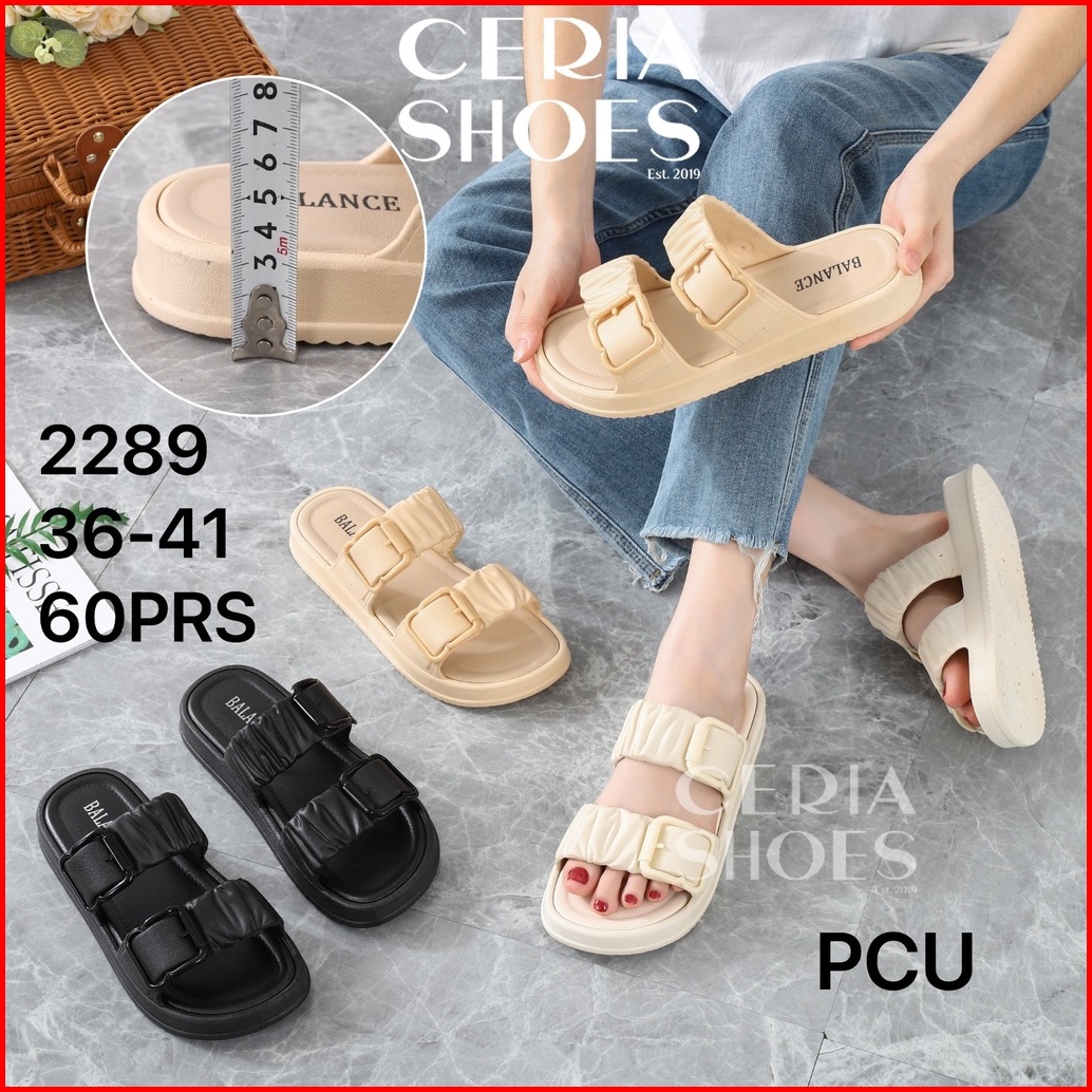 Sandal Slop Wanita Karet Jelly Import Motif Strap Serut Gesper Sol Empuk Ringan Anti Slip Balance 2289