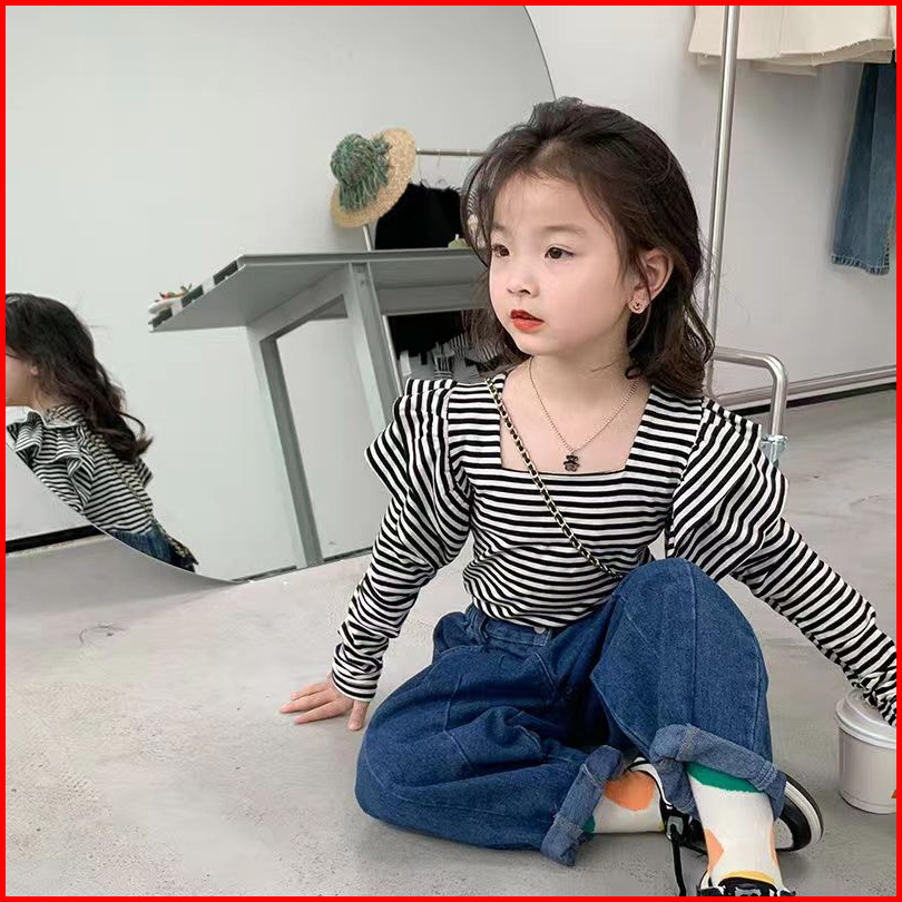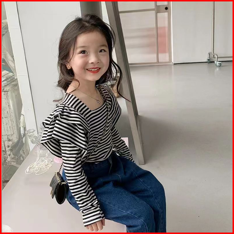 Bintanganak Baju Atasan Anak Perempuan Terbaru Korean Style T-shirt Lengan Panjang Anak Perempuan T-shirt Bergaris Impor