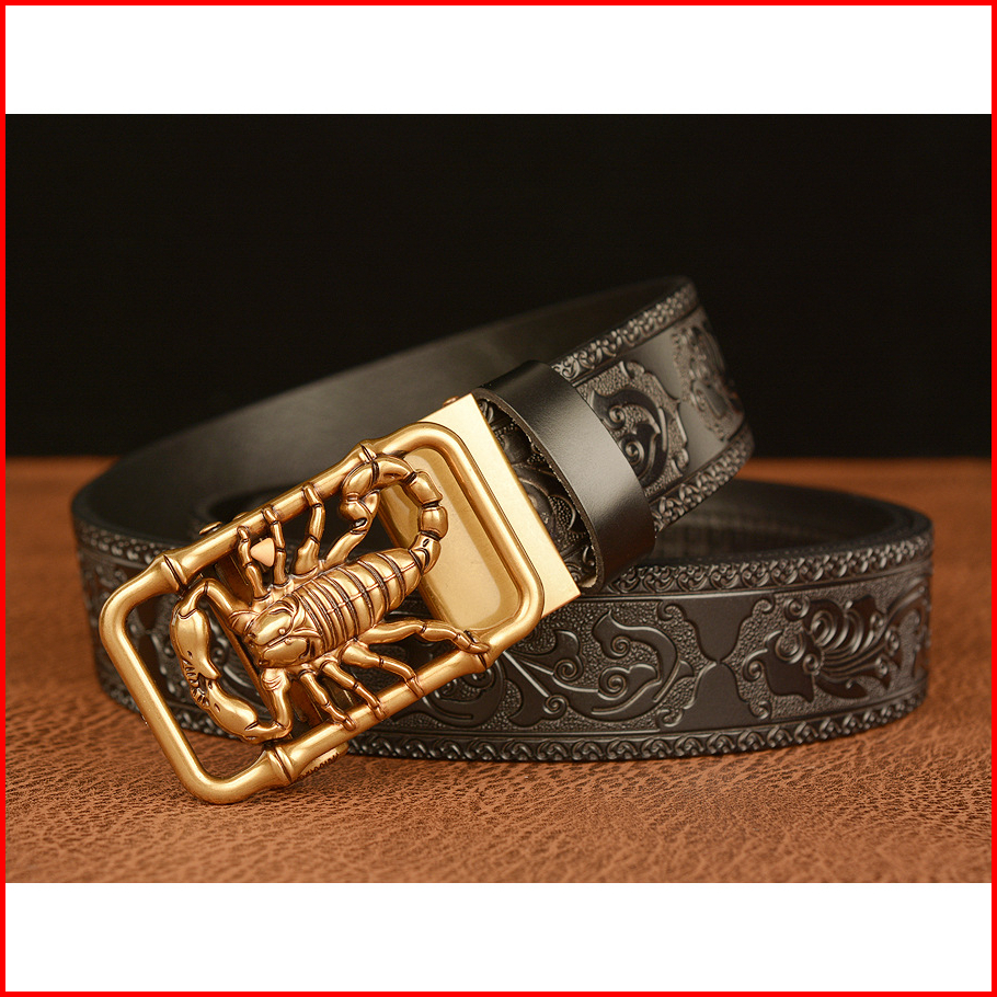 Ikat Pinggang Sabuk Ukir Gesper Pria Kulit Sapi Asli Model Kalajengking