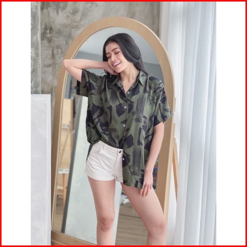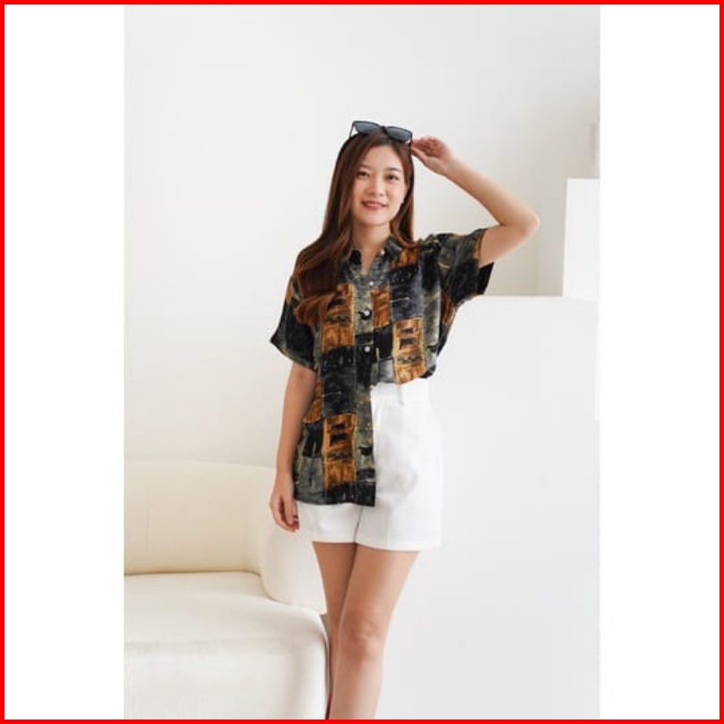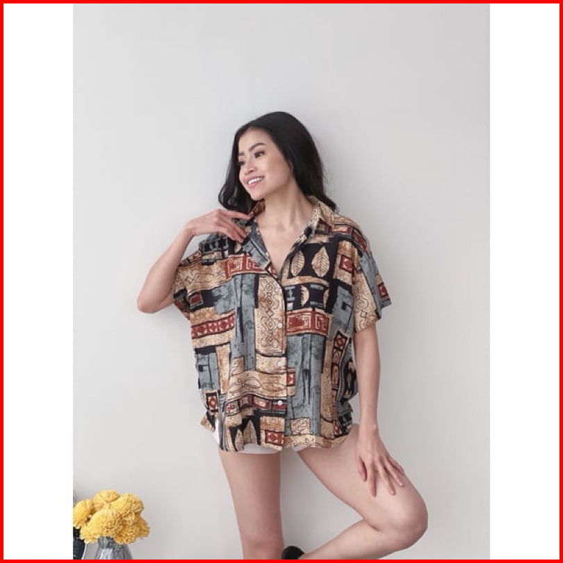 Kemeja Wanita Hawai Kemeja Pantai Abstrak Casual Retro Bahan Rayon Premium
