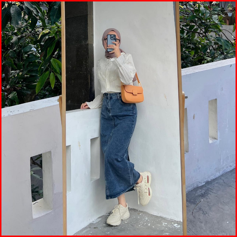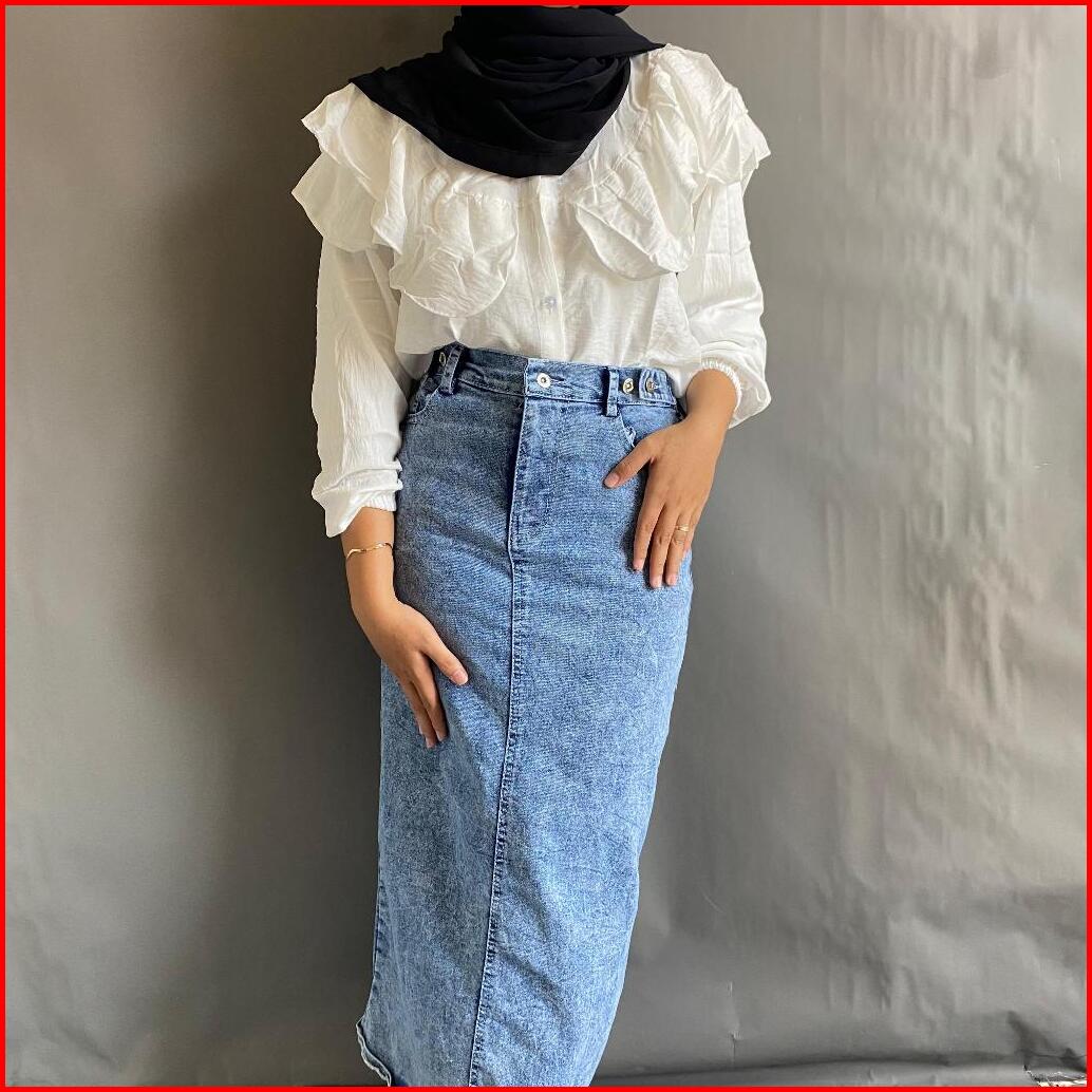 Emweha Rok Jeans Panjang Wanita Belah Theana