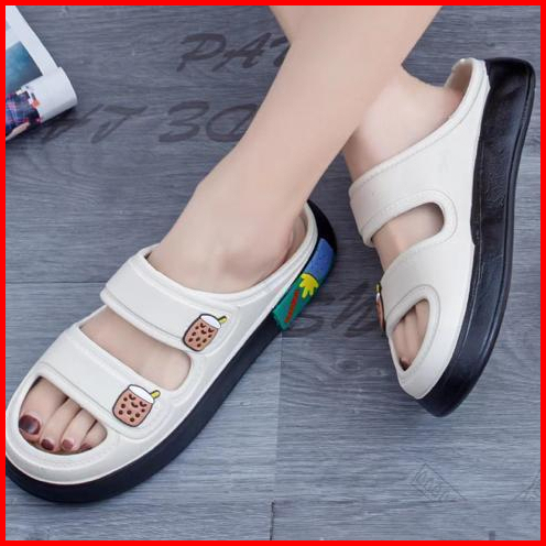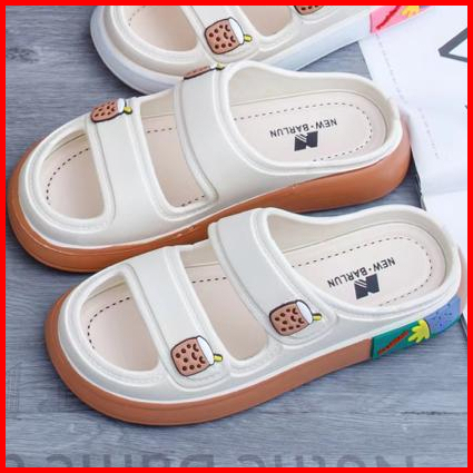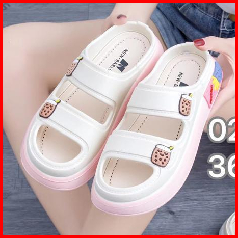 Sandal Slop Korean Jelly Wanita Import Rubber Elastic Non Slip Sole Motif Boba Nb029