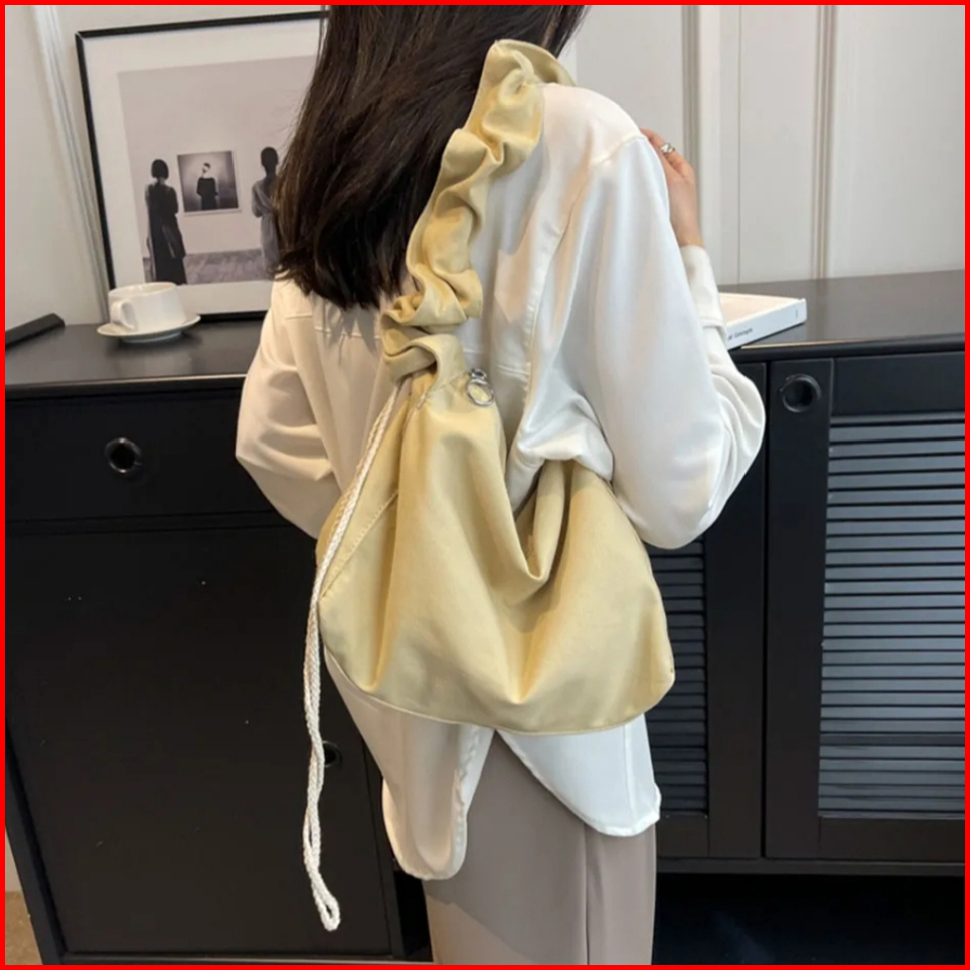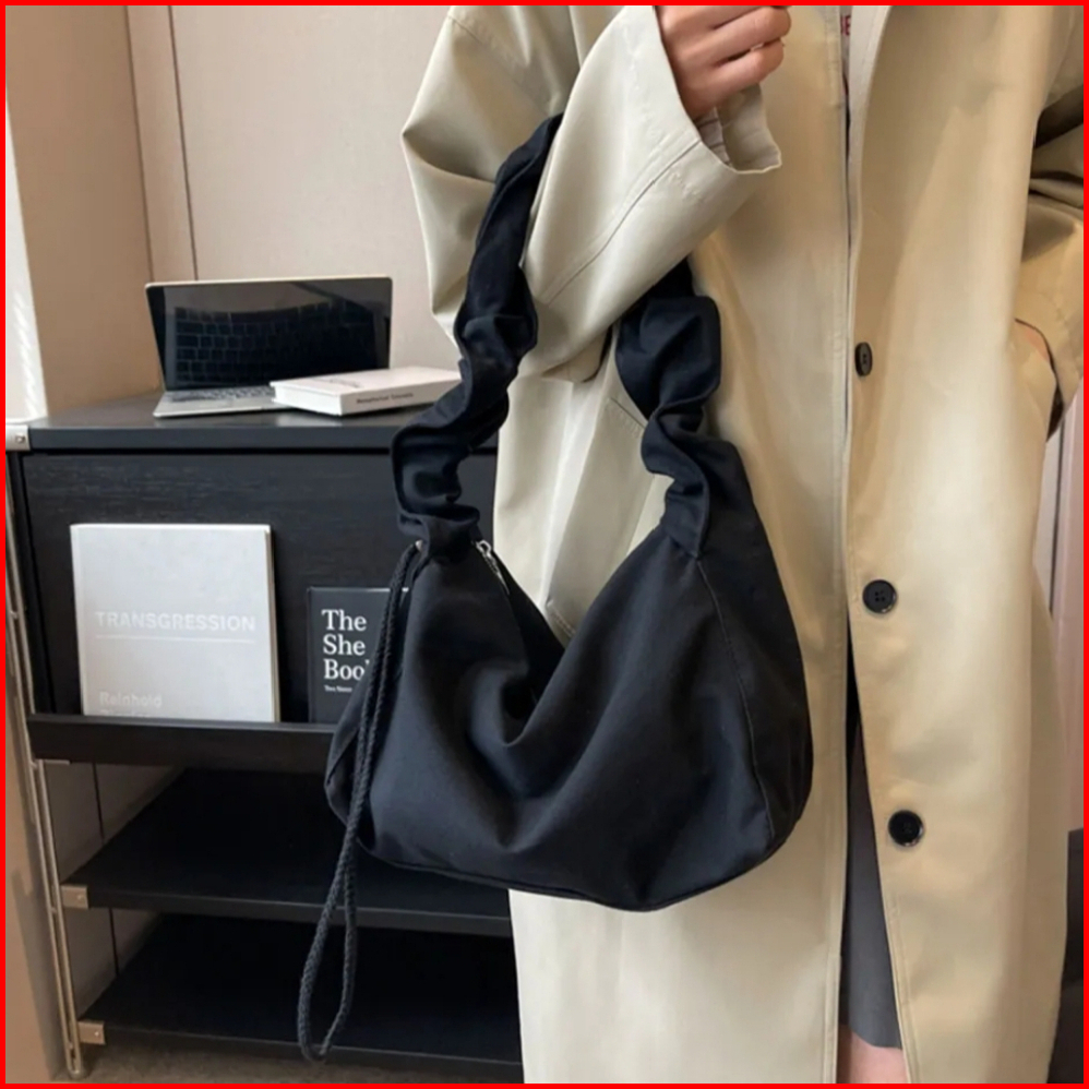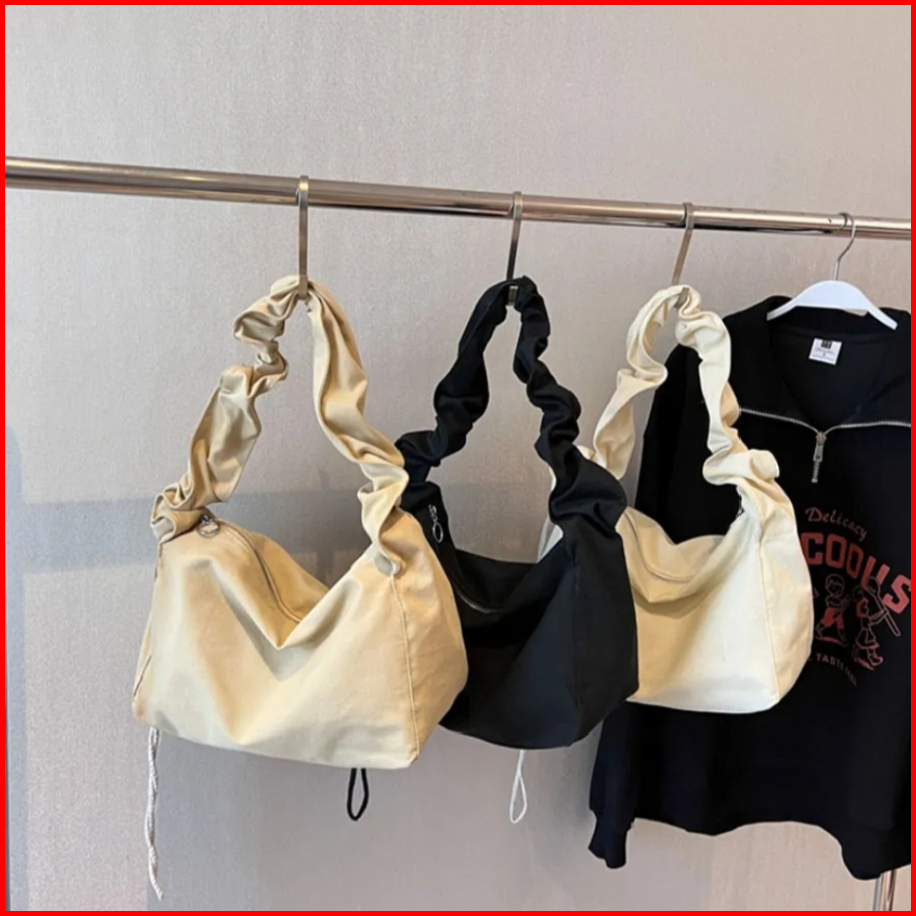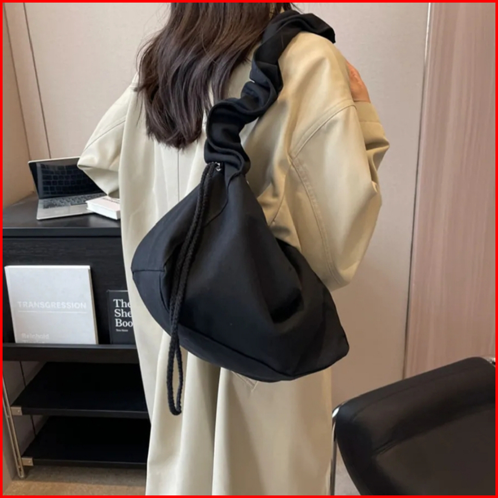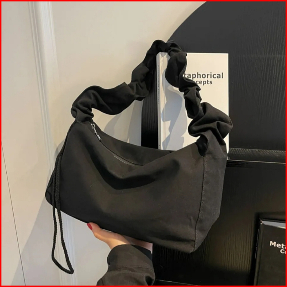 Mr.pluffy - Ciara Shoulder Bag Kanvas Tas Bahu Wanita Premium Hobo Bag Tas Selempang Serut Casual